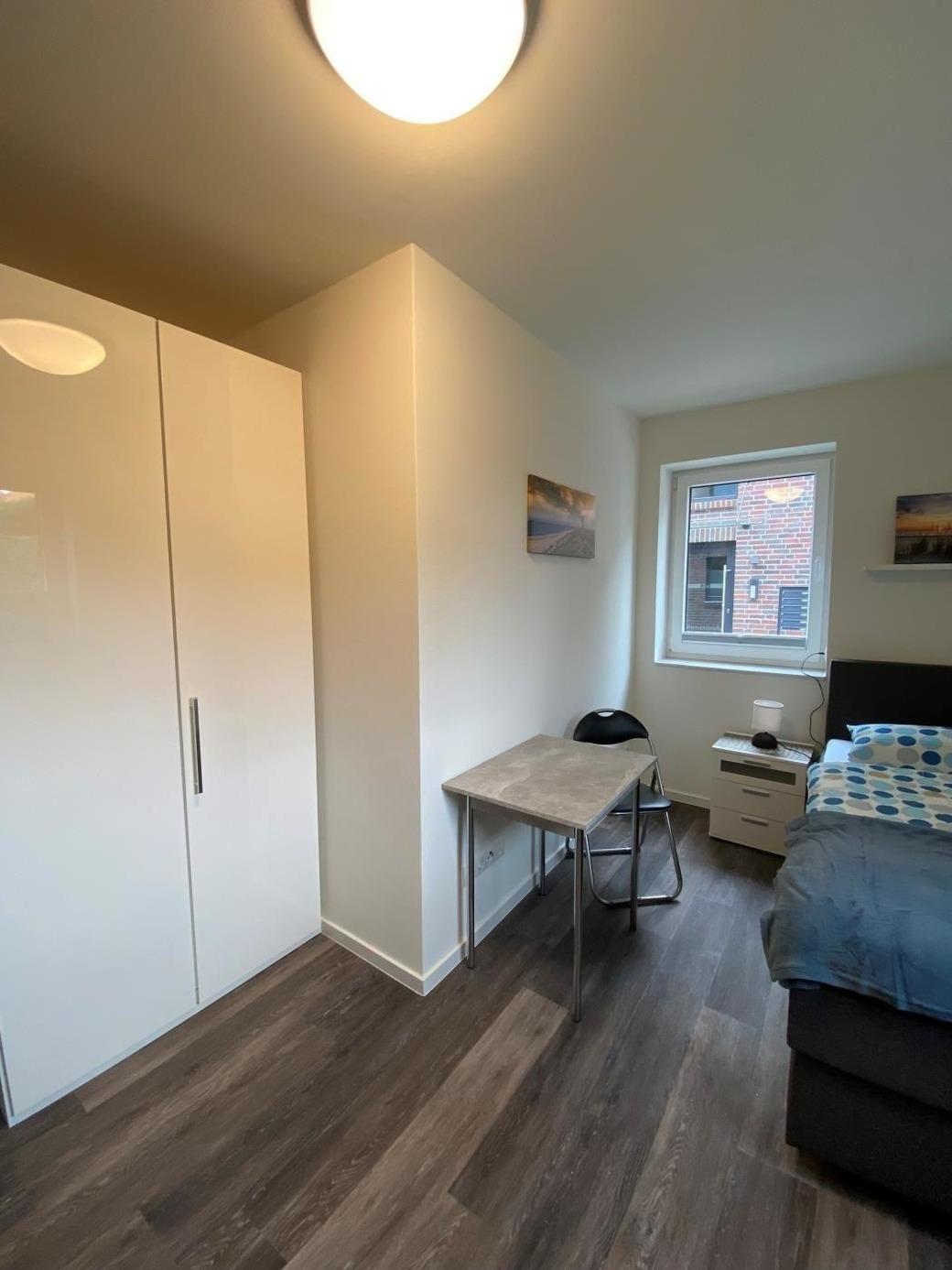 Die Wohnung 14 liegt im Erdgeschoß. Das Wohnzimmer ist lichtdurchflutet mit gemütlicher Sitzecke und den Essbereich und vollausgestatteter Küche. Im Badezimmer befindet sich eine ebenerdige Dusche und die Sauna. Vom Flur aus gelangen Sie die beiden Schlafzimmer.