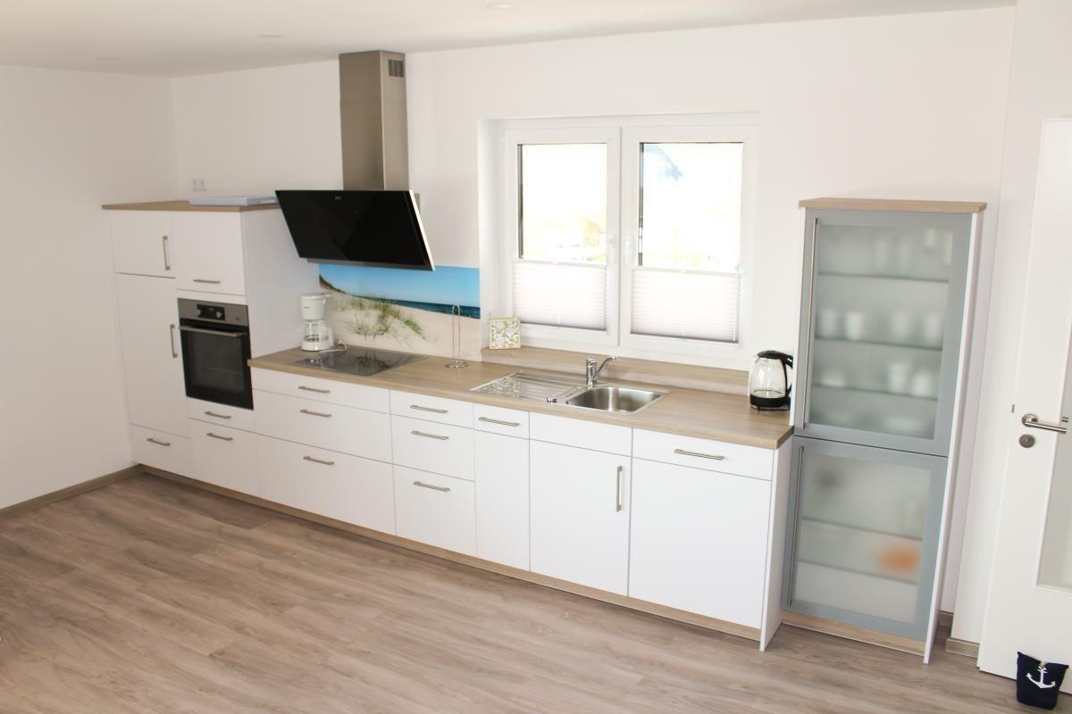 Die Ferienappartements zur Strandwiese befinden sich in einem Haus mit 6 Parteien, dass 2018 neu errichtet wurde. Das Haus wurde direkt neben einem idyllischen Bach und in einer Spielstrasse (Neubaugebiet) mit einer direkten Fussweganbindung zum Strand gebaut. So ist man in nur 2 Gehminuten am Strand. Die Wohnung 6 befindet sich im 2. Obergeschoss zur rechten Seite und verfügt über 53 Quadratmeter reine Wohnfläche. Der grosszügige Wohn- Essbereich wird durch eine sehr moderne Küchenzeile hervorgehoben. Eine grosse Sitzecke mit Smart TV lädt Sie zum Entspannen ein. Gemeinsame Stunden können in der Essecke an einem Esstisch verbracht werden. Von hier aus können Sie auch Ihre grosszügige Dachterrasse mit Blick in das Grüne erreichen. Neben Gartenstühlen und Gartentisch lädt ein vorhandener Elektrogrill zum Verweilen ein. Im Tageslichtbad begrüsst Sie eine helle und freundliche Atomsphäre mit einer bodengleichen Dusche und einem WC. In einem Abstellraum steht eine Waschmaschine zur kostenlosen Nutzung bereit. Im Elternschlafzimmer erwartet Sie ein Doppelbett und ein zweiter TV. Für unsere ganz kleinen Gäste haben wir ein festes Kinderbett vorhanden. Innerhalb der gesamten Wohnung ist kostenloses WLAN sowie eine Fussbodenheizung vorhanden. Direkt vor dem Haus befindet sich ein PKW-Stellplatz und neben dem Haus gibt es eine Abstellmöglichkeit für Ihre Fahrräder. Für unsere kleinen Gäste befindet sich im Gartenbereich eine Kinderspielecke.
