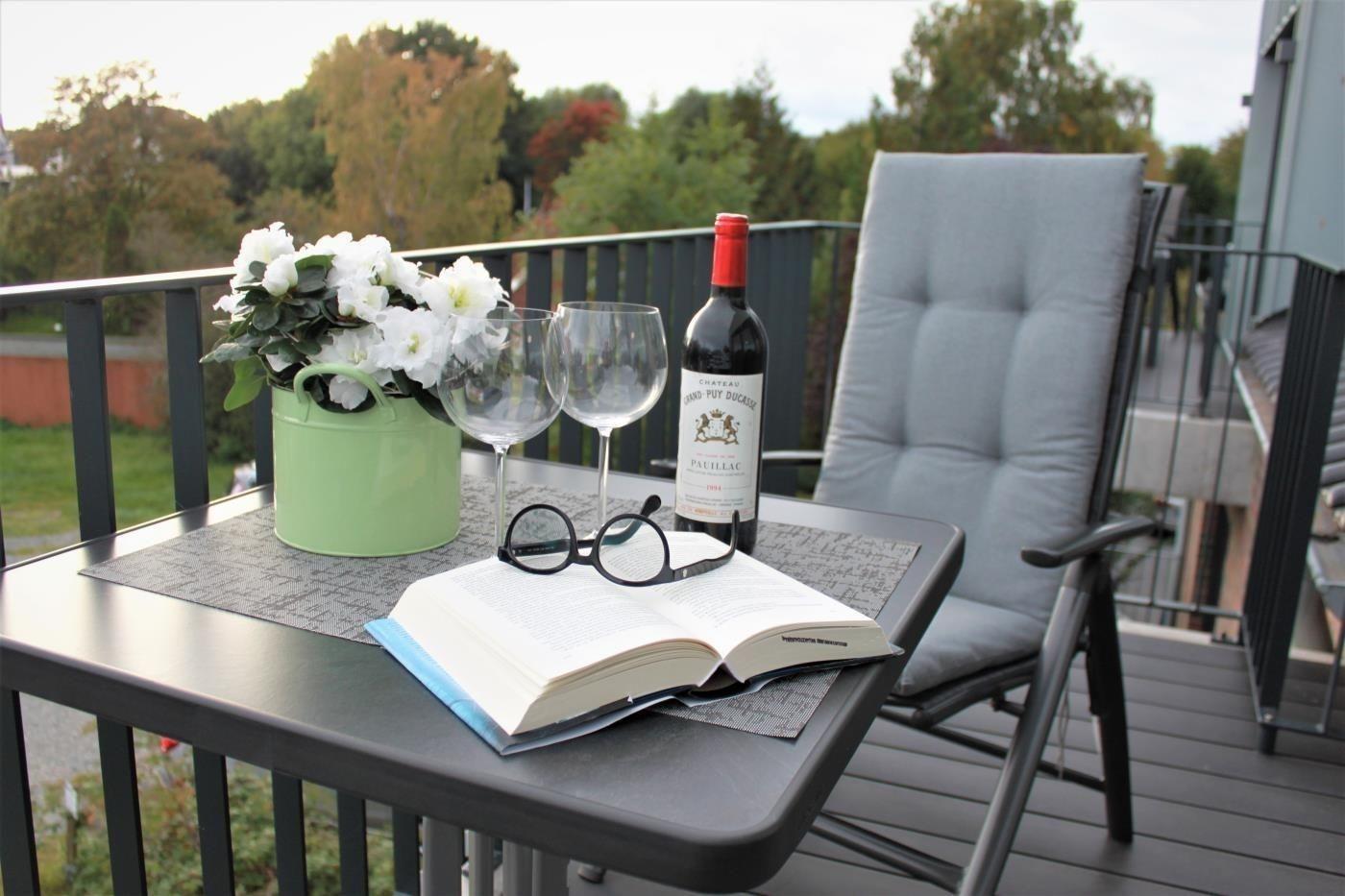 Vom Wohnbereich geht es direkt auf den Balkon mit Ost-Süd-West-Ausrichtung. Hier kann vom Morgen bis zum Abend die Sonne scheinen, also super für ein gutes Frühstück in frischer Morgenluft oder den Sundowner an einem lauen Sommerabend.
