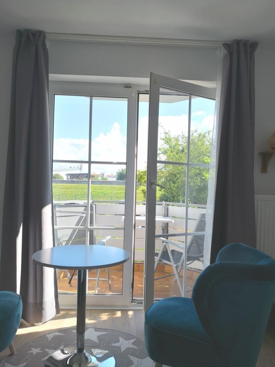 Außerdem gibt es einen Balkon, von dem man direkt Richtung Deich schaut, sowie einen zur Wohnung gehörenden Parkplatz.