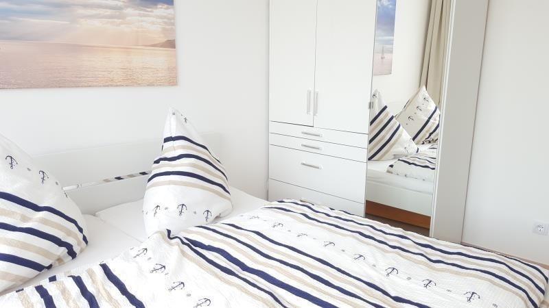 Die Wohnung verfügt über ein großzügiges Wohnzimmer mit integrierter Küchenzeile, Esstisch mit 4 Stühlen, Swingsessel und einer Schlafcouch (Liegefläche 150 x 200). Das moderne Bad/WC ist in weiß gehalten und hat eine Echtglasdusche (niedriger Einstieg). Der separate Schlafraum ist mit einem Doppelbett (180 x 200), Nachttisch und einem 2-türigen Spiegelschrank ausgestattet. Die Wohnung verfügt natürlich über WLAN, TV-Flachbildschirm, Sat-Empfang in HD sowie DVD-Player mit kleiner Filmbibliothek. Die Wohnung ist komplett modernisiert.