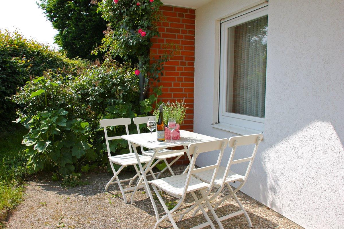 Gemütliche Ferienwohnung mit zwei Schlafzimmern und Süd-Terrasse in Dahme, nur wenige Schritte vom Strand entfernt.