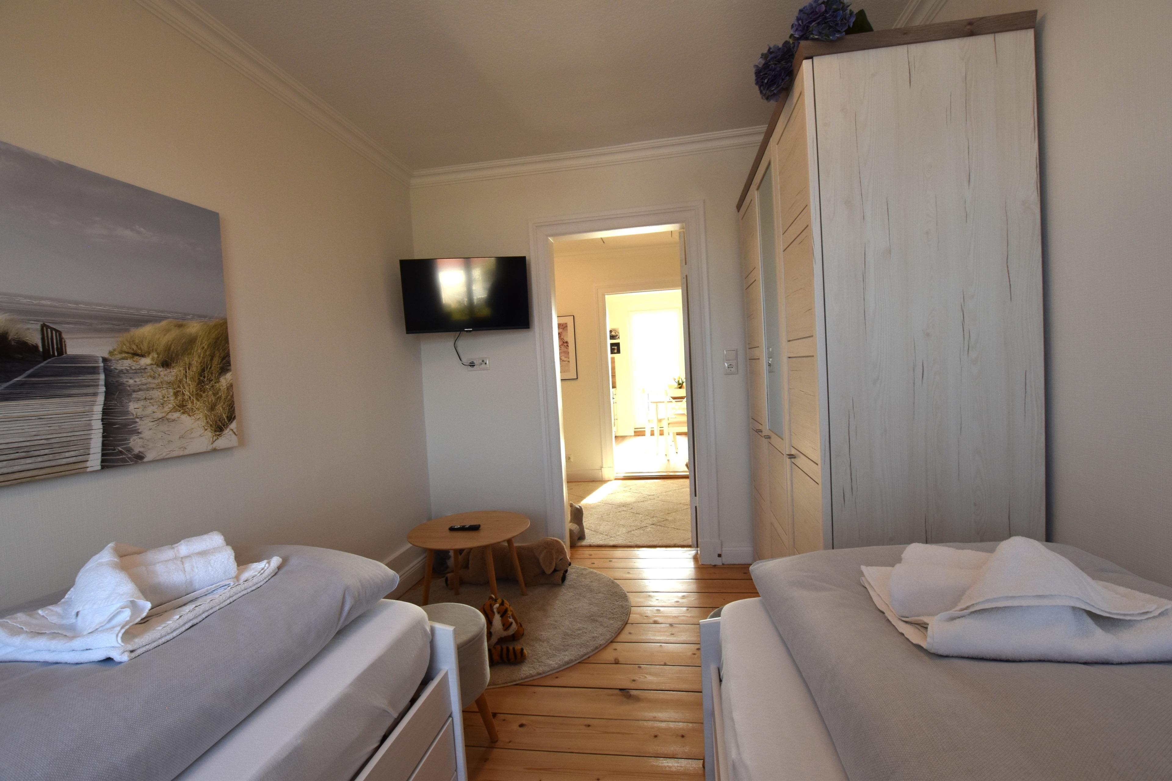 Das Schlafzimmer 3 hat zwei Einzelbetten (90x200 cm) und einen Kleiderschrank.