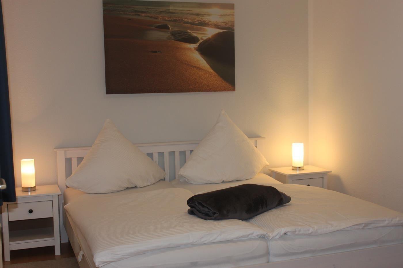 Die Ferienwohnungen mit Terrasse haben ein gemütliches Wohnzimmer mit Sitzecke (Schlafsofa), TV und einen Essbereich. Die Küche ist praktisch eingerichtet mit ausreichendem Geschirr, Besteck und Gläser. Zum Inverntar gehören auch ein Wasserkocher, Toaster, Kaffeemaschine, Geschirrspüler und Mikrowelle. Das Schlafzimmer ist mit einem Doppelbett (2x90x200cm) und großzügigem Kleiderschrank ausgestattet, im zweiten Schlafzimmer stehen zwei Einzelbetten (90x200cm) und ein Kleiderschrank (100cm breit). Das Badezimmer mit Fenster hat eine Dusche und WC. Hier steht auch die Waschmaschine.