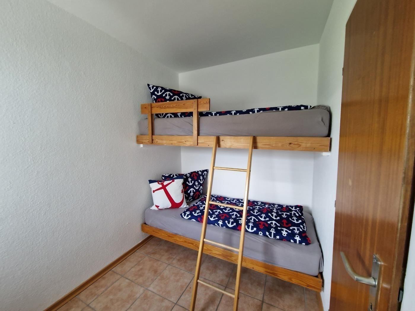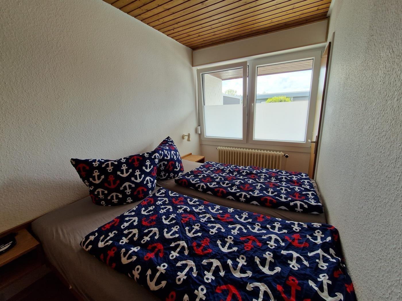 Diese Wohnung bietet Zwei Schlafzimmer. Eines ist mit Doppelbett ausgestattet und das Andere ist mit zwei Einzelbetten ausgestattet. Die Küchenzeile bietet alles, was sie benötigen um auch im Urlaub kochen zu können. Eine Waschmaschine und ein Trockner stehen all unseren Gästen zur Verfügung (5 Euro/Wasch- oder Trockengang). Die Anlage verfügt über W-Lan.