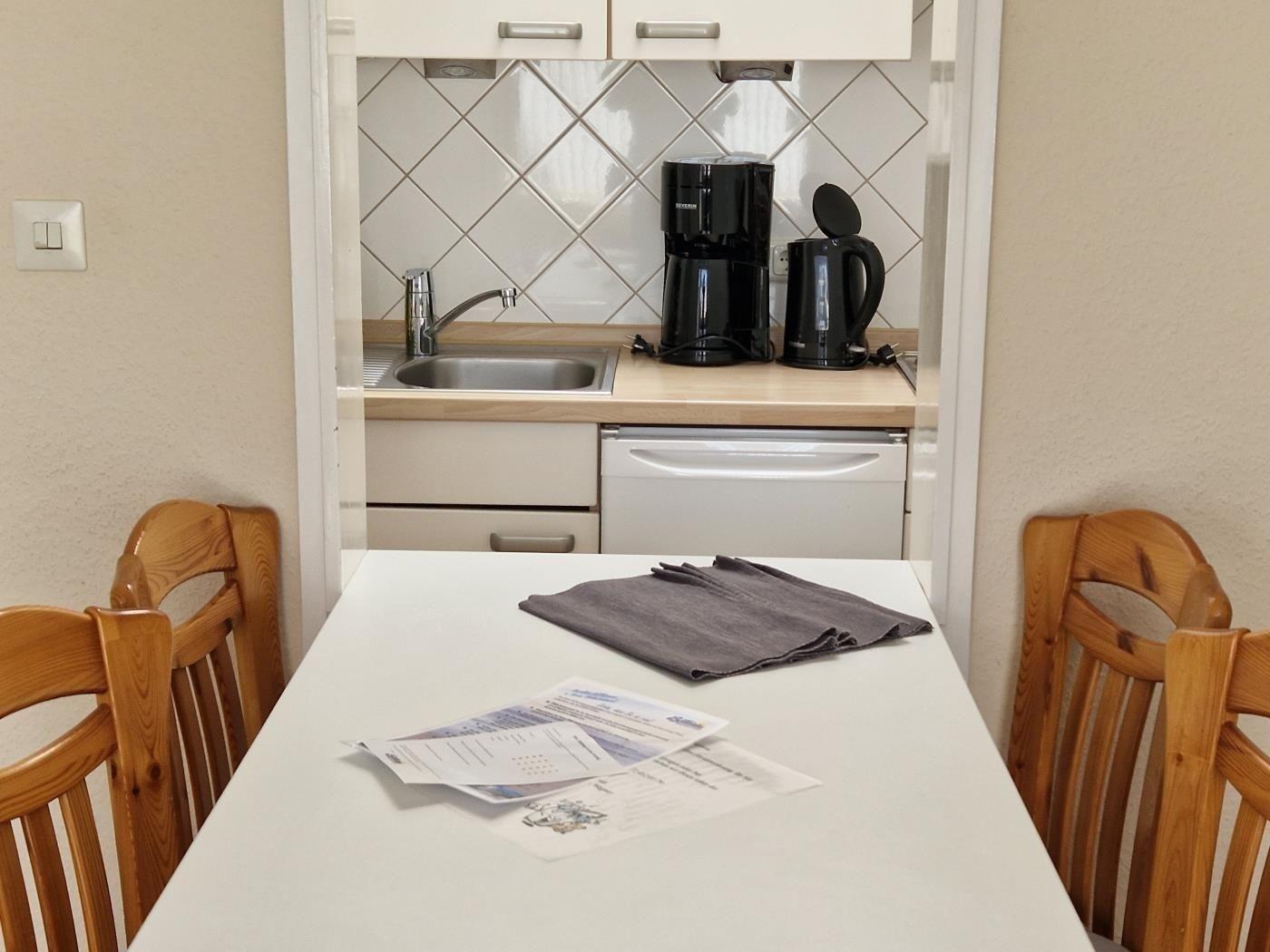 Die Wohnung besteht aus drei Zimmern. Die Wohnung verfügt über zwei Schlafzimmer. Das eine ist mit einem Doppelbett ausgestattet und das Andere mit zwei Einzelzimmern. Die Küche ist mit allem ausgestattet, was sie brauchen, damit sie auch im Urlaub ihre Kochkünste unter Beweis stellen können. Eine Waschmaschine und ein Trockner stehen all unseren Gästen zur Verfügung (5 Euro/Wasch- oder Trockengang). Die Anlage verfügt über W-Lan.
