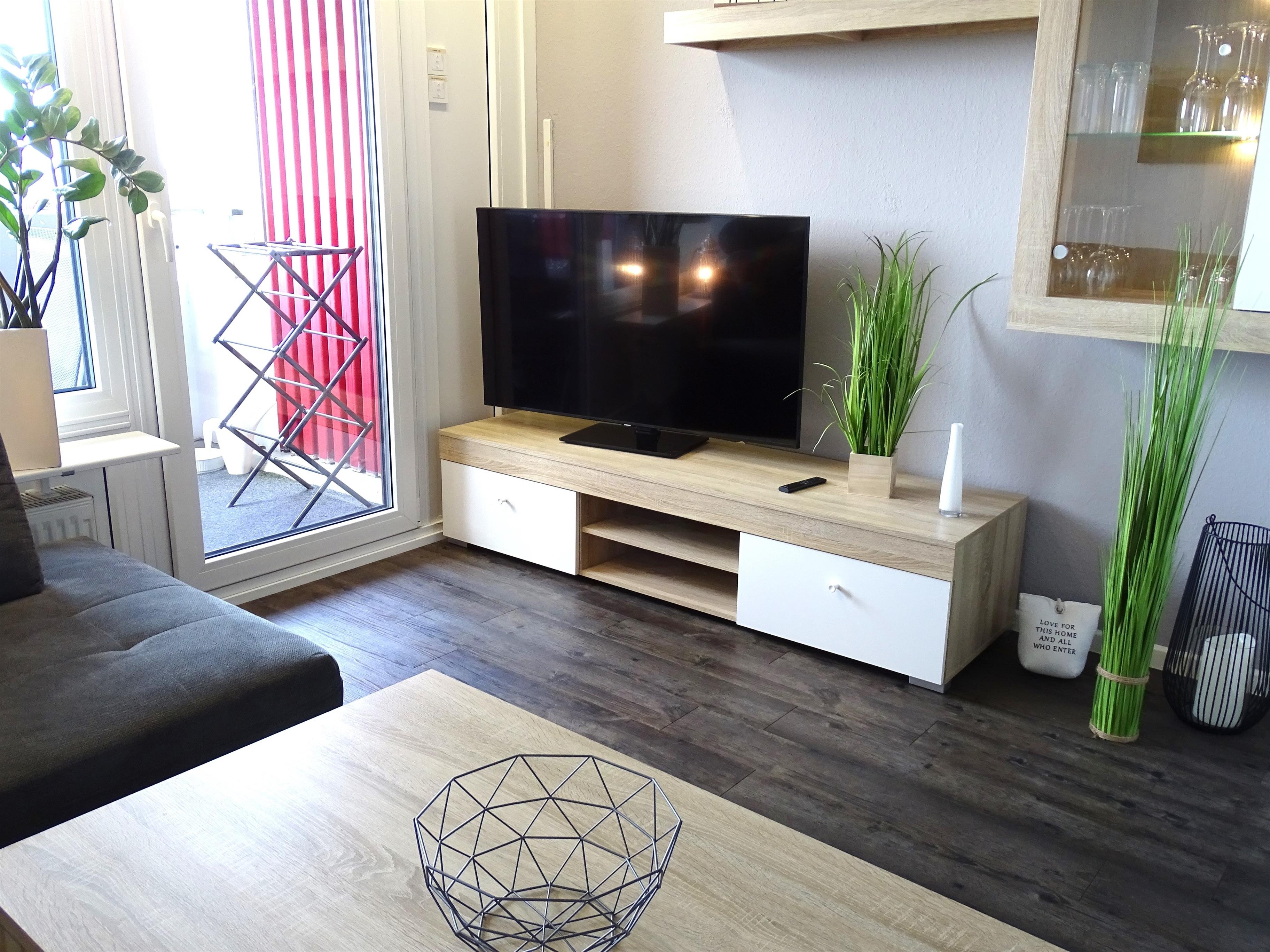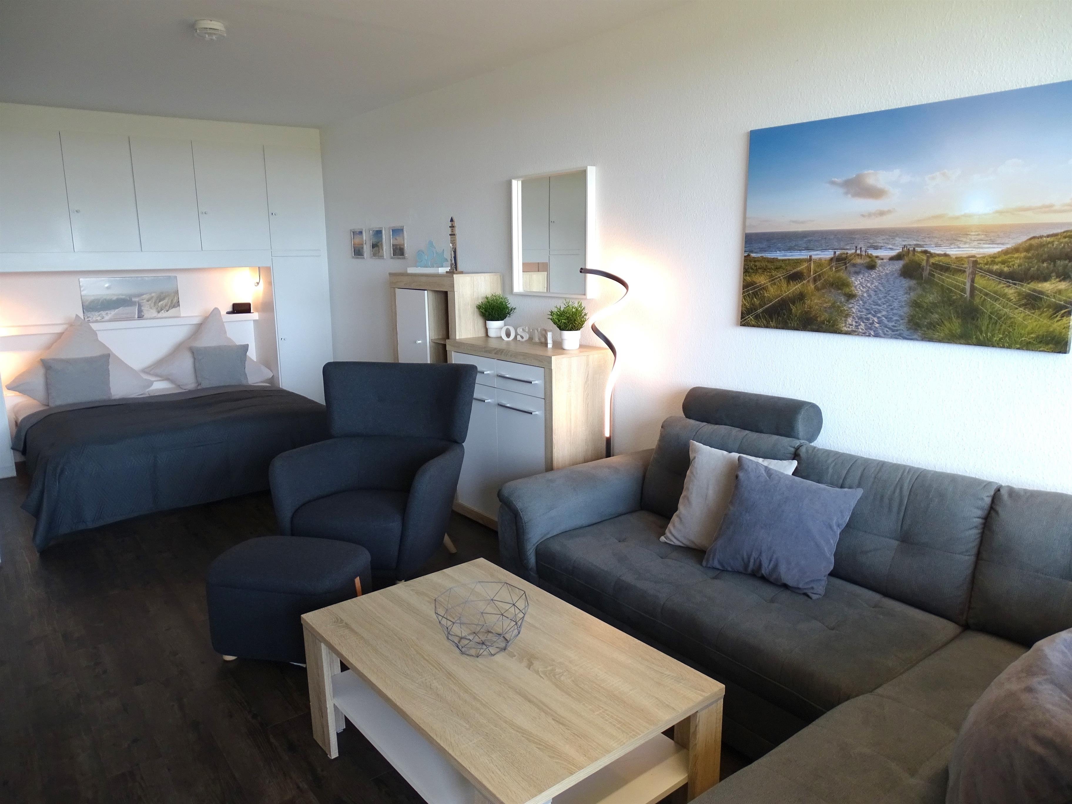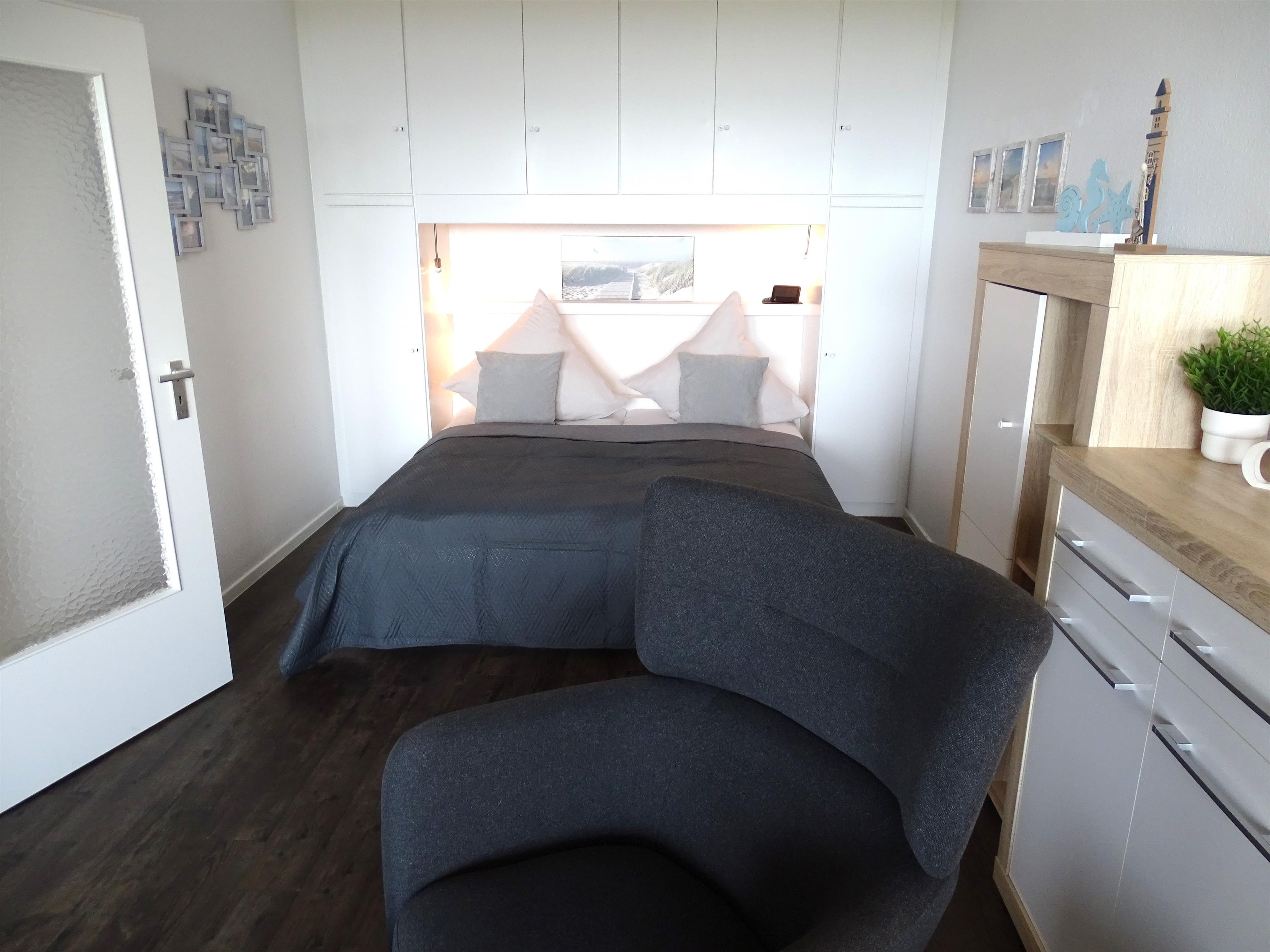 Die Wohnung besticht durch einen lichtdurchfluteten, offenen Wohn- und Schlafbereich. Ausgestattet ist Ihr Urlaubsdomizil mit einem Doppelbett (180x200), Kleiderschrank, sowie einem Ecksofa , 1 Sessel, einem Flachbildfernseher und direktem Zugang auf den möblierten Balkon mit Blick über die Felder und seitlichem Meerblick. Die offene Küche ist z. B. mit einem 4-Platten-Cerankochfeld, einem Backofen und einer Geschirrspülmaschine voll ausgestattet. Für den Kaffee am Morgen steht Ihnen eine Senseo Duo-Kaffeemaschine zur Verfügung. Der Esstisch lädt zu einem geselligen Essen mit der Familie ein. Im separaten Schlafzimmer erwartet Sie ein Doppelbett ( 140x200 ), sowie ein Schrank und ein weiterer Flachbildfernseher. Alle Schlafräume lassen sich angenehm verdunkeln. Das Badezimmer ist mit einer Badewanne ausgestattet. Der WLAN-Anschluss ist selbstverständlich inklusive.