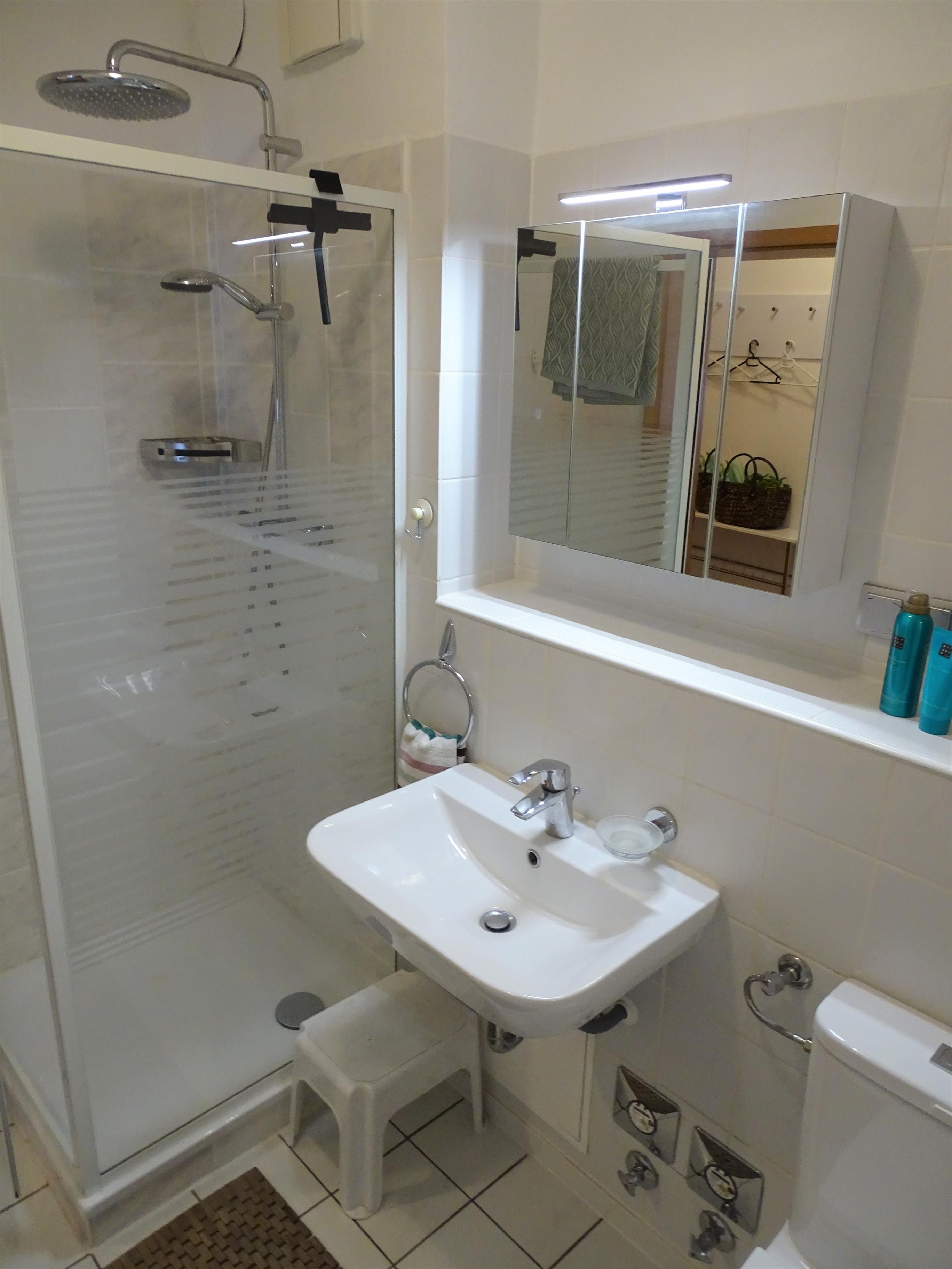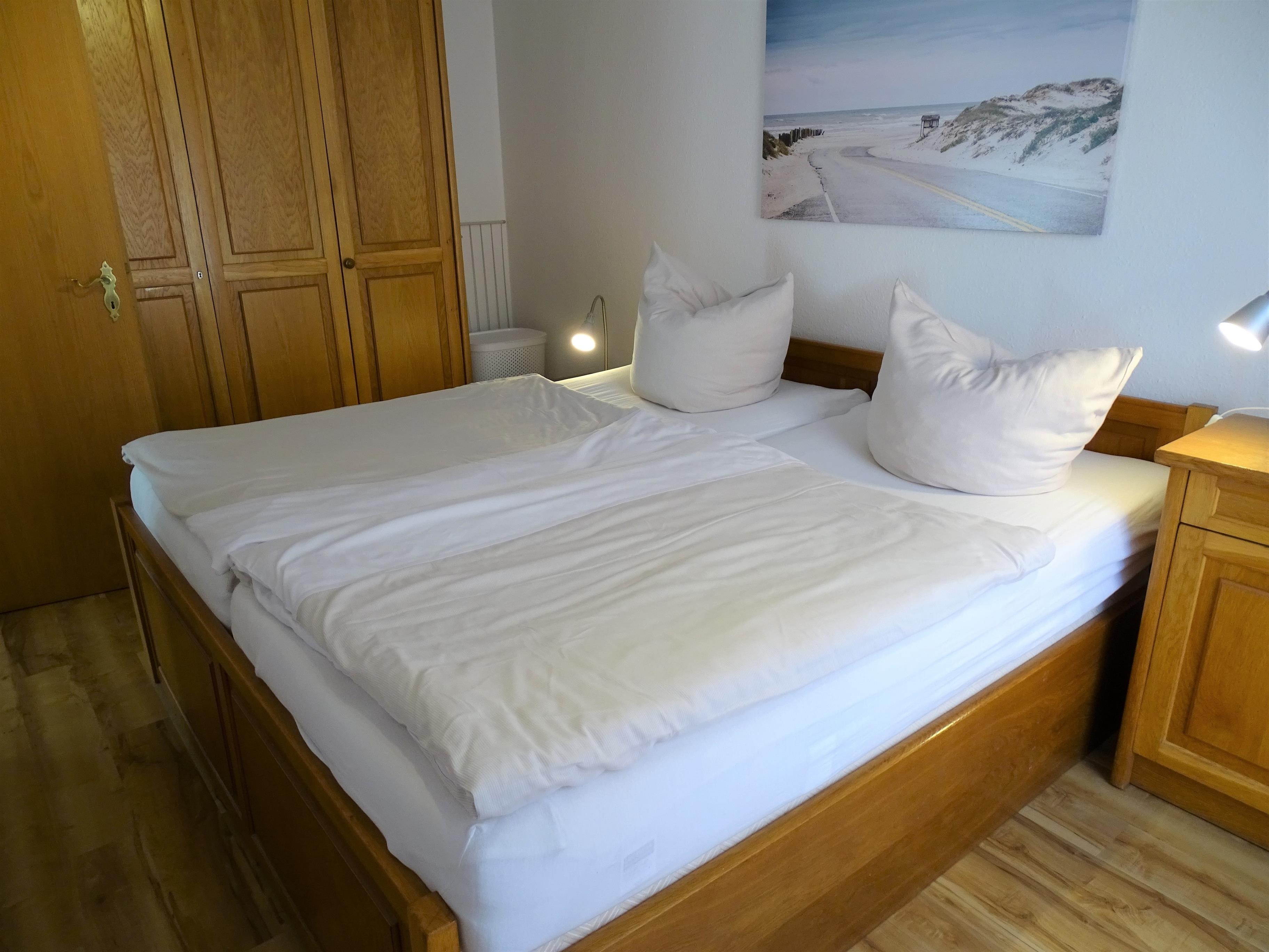 Den Mittelpunkt der Wohnung bildet der offene Wohn-/Ess- und Kochbereich. Hier trifft sich die Familie auf der großen gemütlichen Couch mit Flachbild-TV oder am Esstisch zum gemeinsamen Spielen. Loggen Sie sich über den kostenlosen WLAN-Anschluss ein, um auch im Urlaub erreichbar zu bleiben. In der gut ausgestatteten Küche können Sie Ihre Lieben mit selbst zubereiteten Köstlichkeiten versorgen. Auf der eigenen möblierten Terrasse hören und riechen Sie das Meer! Im Hauptschlafzimmer mit bequemem Doppelbett (2x 90x200 cm) und Kleiderschrank können Sie sich nach einem ereignisreichen Urlaubstag erholen und Kraft für den neuen Tag tanken. Das 2. Schlafzimmer beinhaltet 2 Einzelbetten ( 90 x 200 ) , mit Kleiderschrank und einem zusätzlichen TV-Gerät. Das hell geflieste Duschbad komplettiert die Ausstattung dieser schönen Ferienwohnung und verfügt sogar über eine Waschmaschine.
