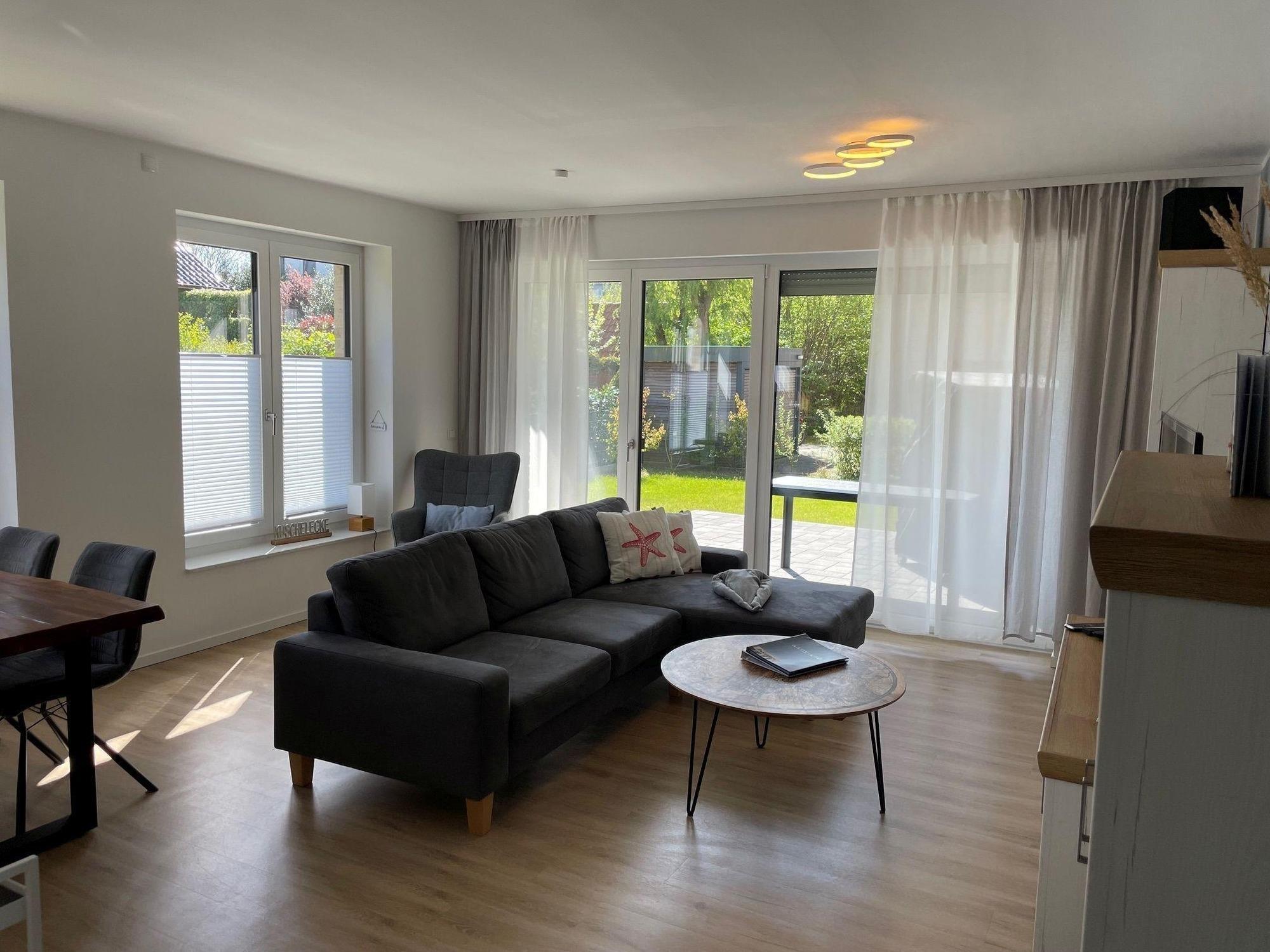 Moderne Ferienwohnung 'Ankerplatz' in Dahme mit Sauna, Terrasse und E-Ladesäule für entspannte Ostseeferien.