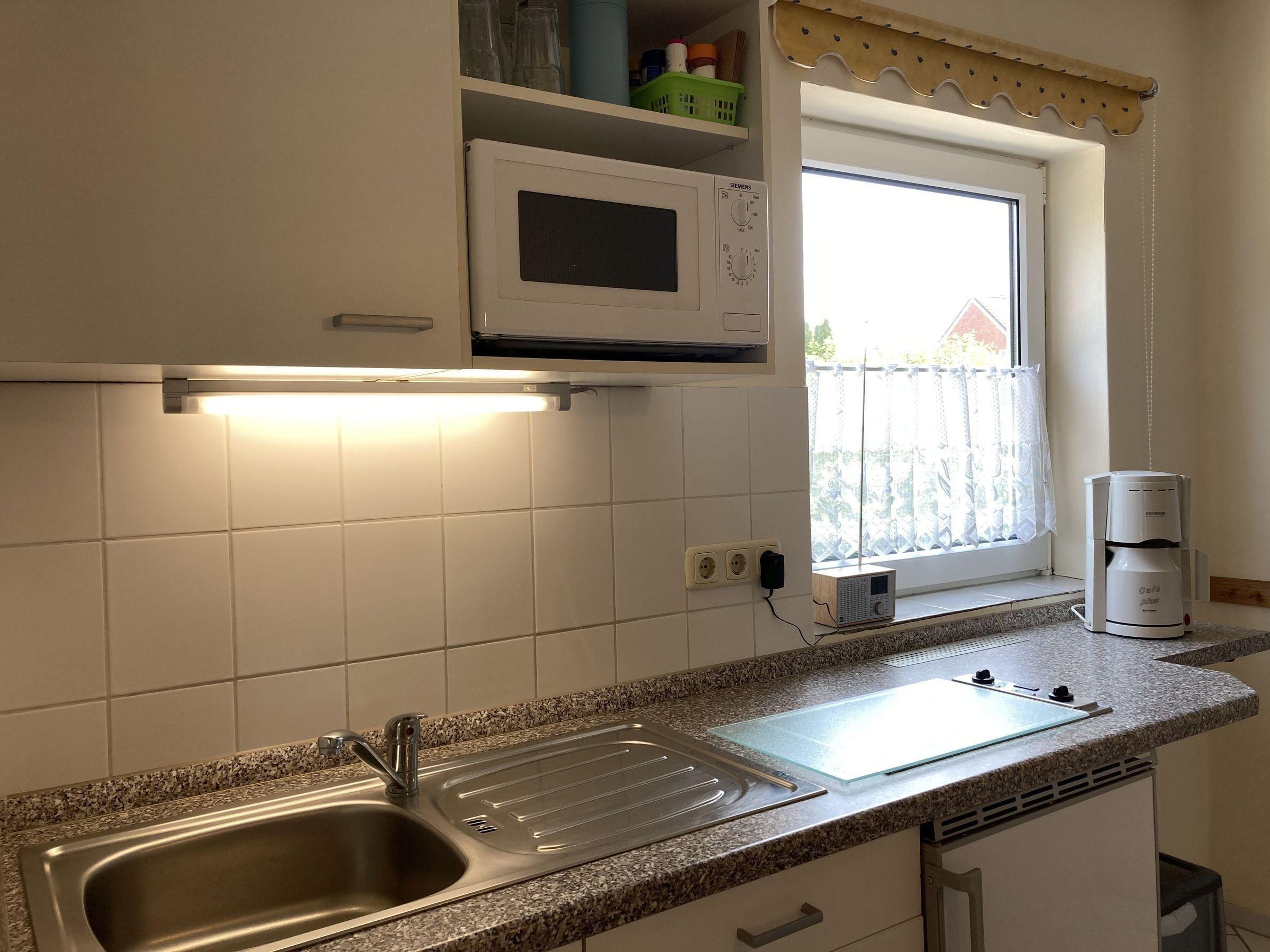 - Küche mit Mini-Backofen und Essplatz für max. 3 Personen