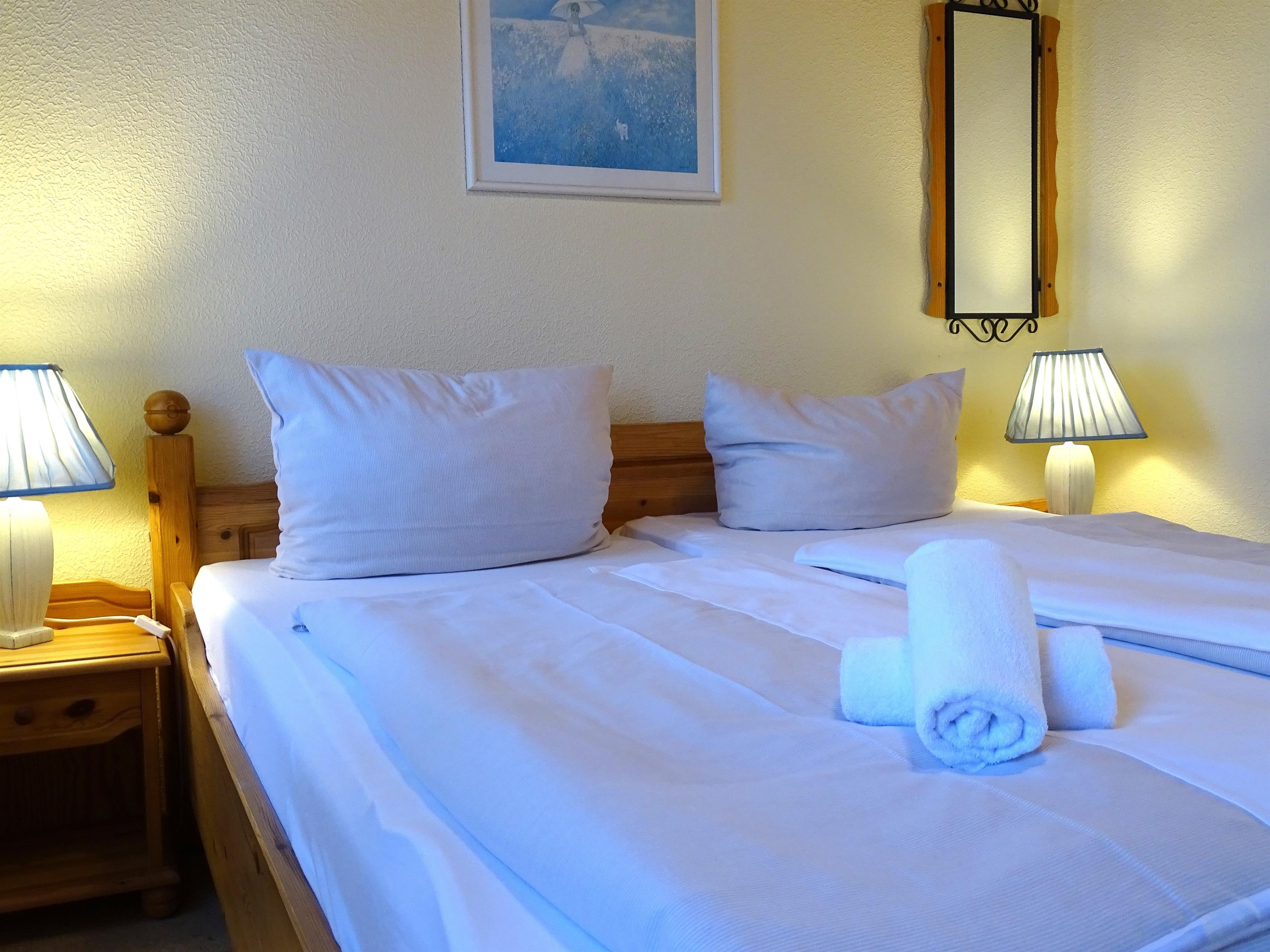 Die 3- Zimmer Ferienwohnung befindet sich im Erdgeschoss des Hauses. Aufgeteilt ist sie in: 2 komplett eingerichtete Schlafzimmer mit Doppelbetten und verstellbaren Gesundheitsrahmen und Federkernauflage. Gemütliches Wohnzimmer mit Sitzgruppe, Eßtisch und integrierter Einbauküche mit dem Ausgang zur möbilierten Südterrasse. Einbauküche voll eingerichtet mit Kühlschrank, Geschirr, 4-Plattenherd mit Backofen, Spülmaschine, Toaster, Kaffeemaschine usw.