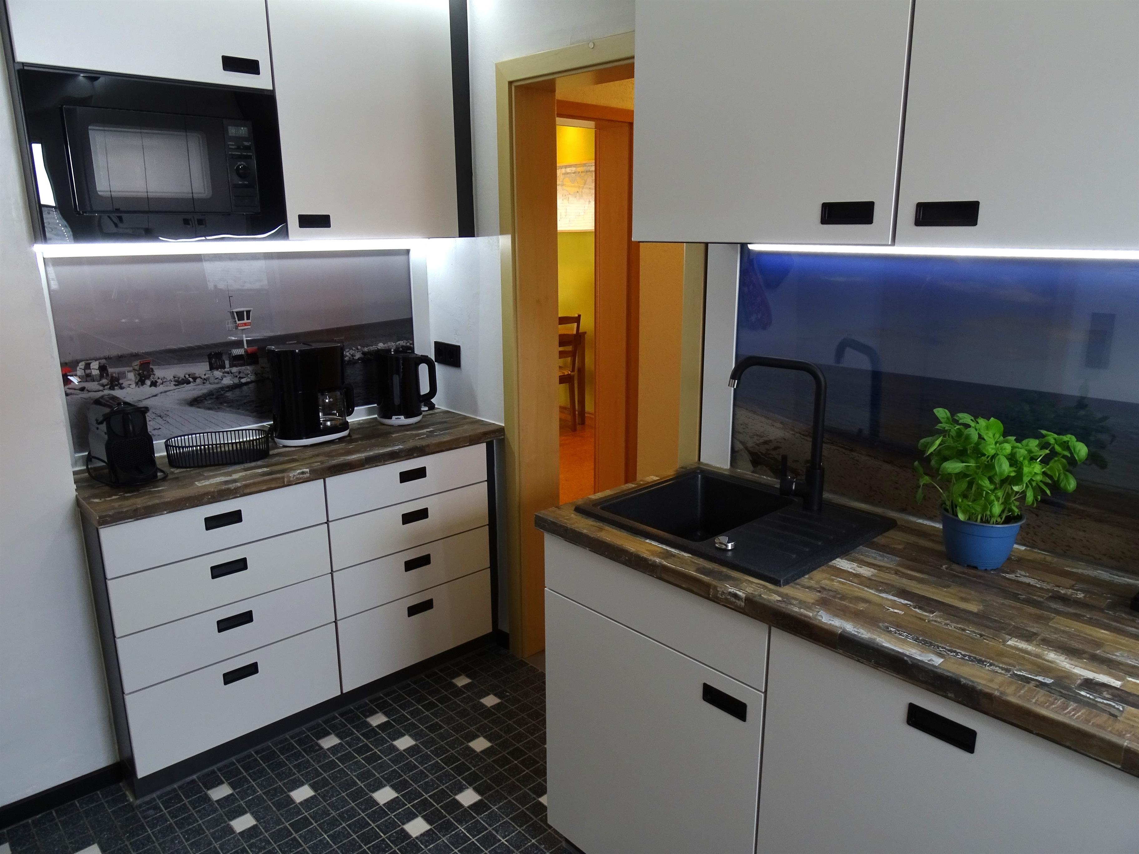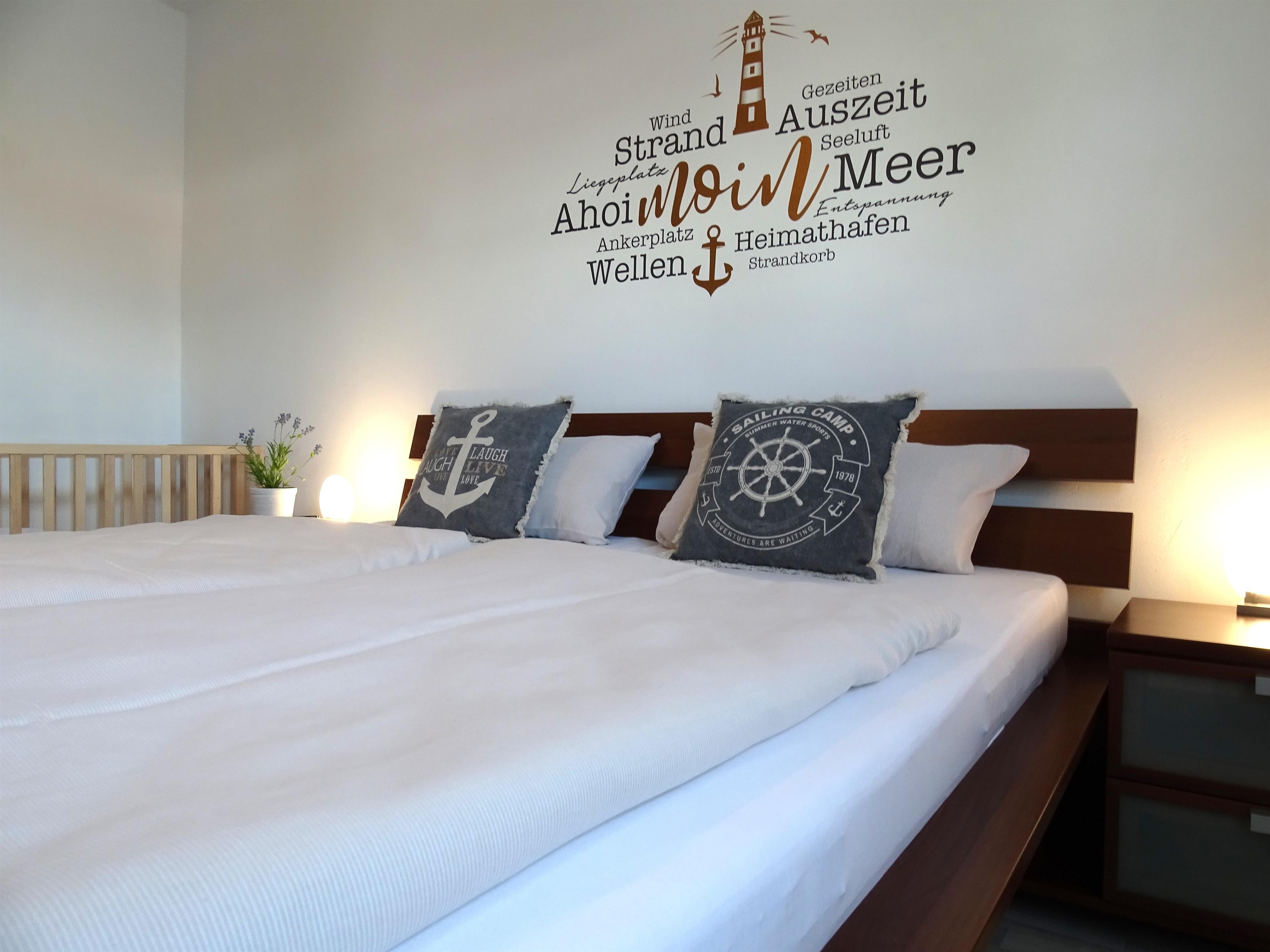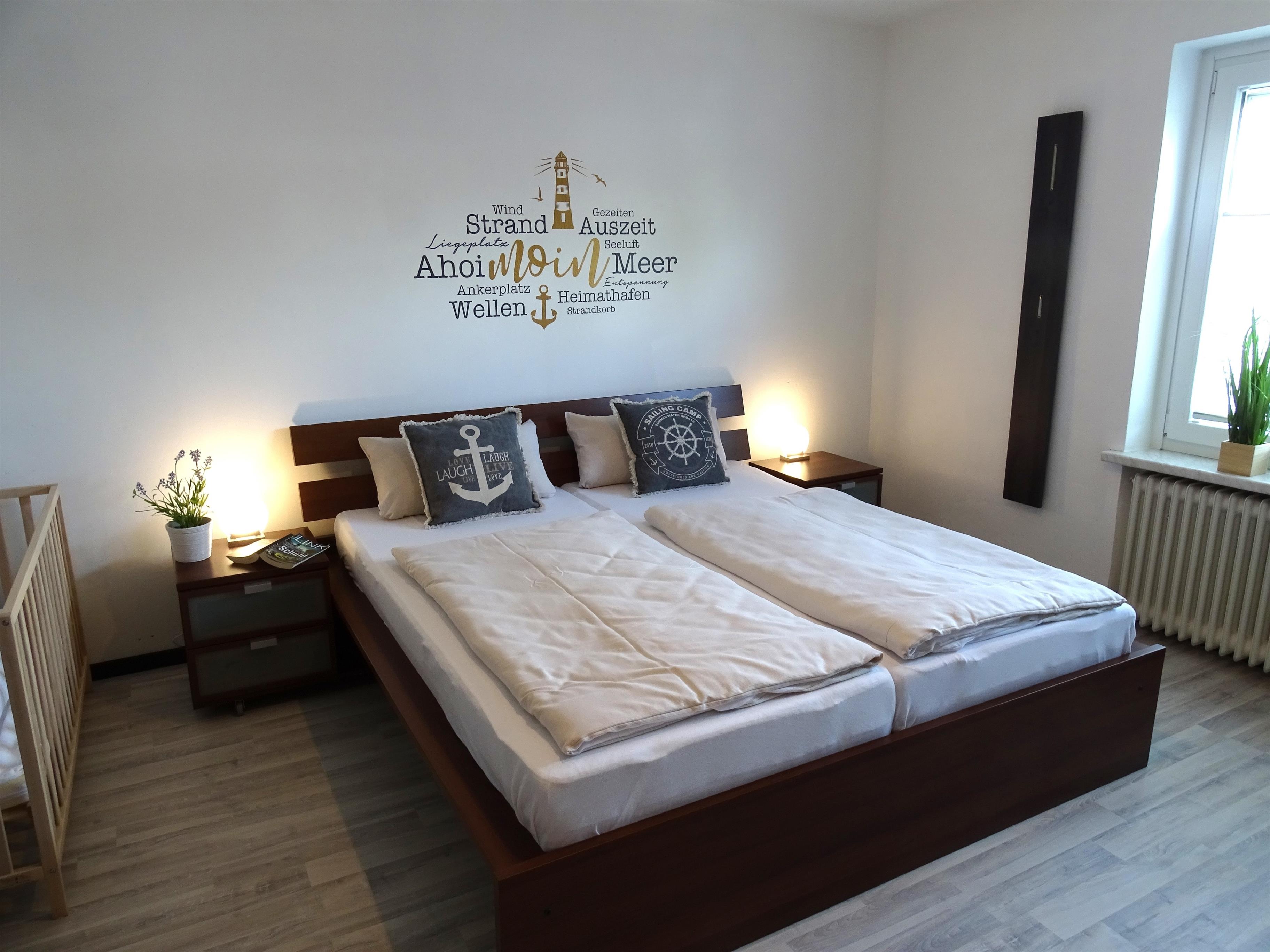 Die Wohnung besteht aus einem Wohnzimmer mit Sofa, Couchtisch, Esstisch mit 4 Stühlen und Anrichte. Die Küche vrfügt über eine Einbauküche mit Backofen+ Ceranfeld, Kühlschrank, Mikrowelle und Geschirrspüler. Zwei separate Schlafzimmer, eines mit Doppelbett und Kinderbett, eines mit zwei getrennten Einzelbetten, beide Räume mit Kleiderschrank und Nachttisch. Dusche/WC. Separater Abstellraum für Fahrräder und Strandzubehör im Garten. Parkplätze vor dem Haus. Großer Garten mit Schaukeln und Rutsche, eine Wäschespinne steht zur Verfügung. Sat-TV, Musikanlage mit DVD/CD und W-Lan. Separater Eingang mit eigenem Briefkasten.