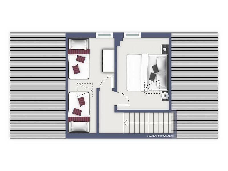 Die Maisonette-Wohnung besteht aus: einem Wohnzimmer mit Doppelbettcouch, LCD-TV und DVD-Player, einer Essecke, einer Küche mit Ceranfeld, Mikrowelle und Geschirrspüler, Dusche/WC. Im Dachgeschoß befinden sich die 2 Schlafräume. Eins mit Doppelbett und eins mit 2 Einzelbetten