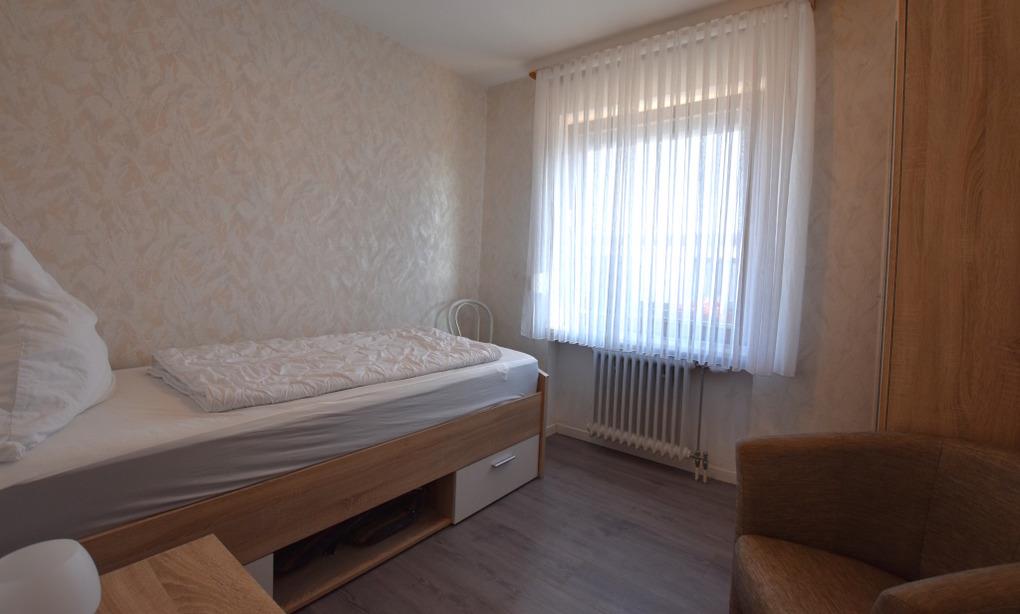 Sitzecke und Farb-TV und einem weiteren Schlafzimmer mit einem Einzelbett.
