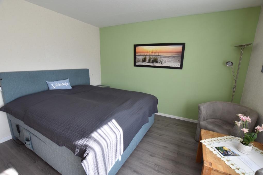 Die Ferienwohnung 6 besteht aus einem Wohn-/Schlafraum mit einem Boxspringbett bestehend aus 2 Matratzen (0,90 m x 2 m),