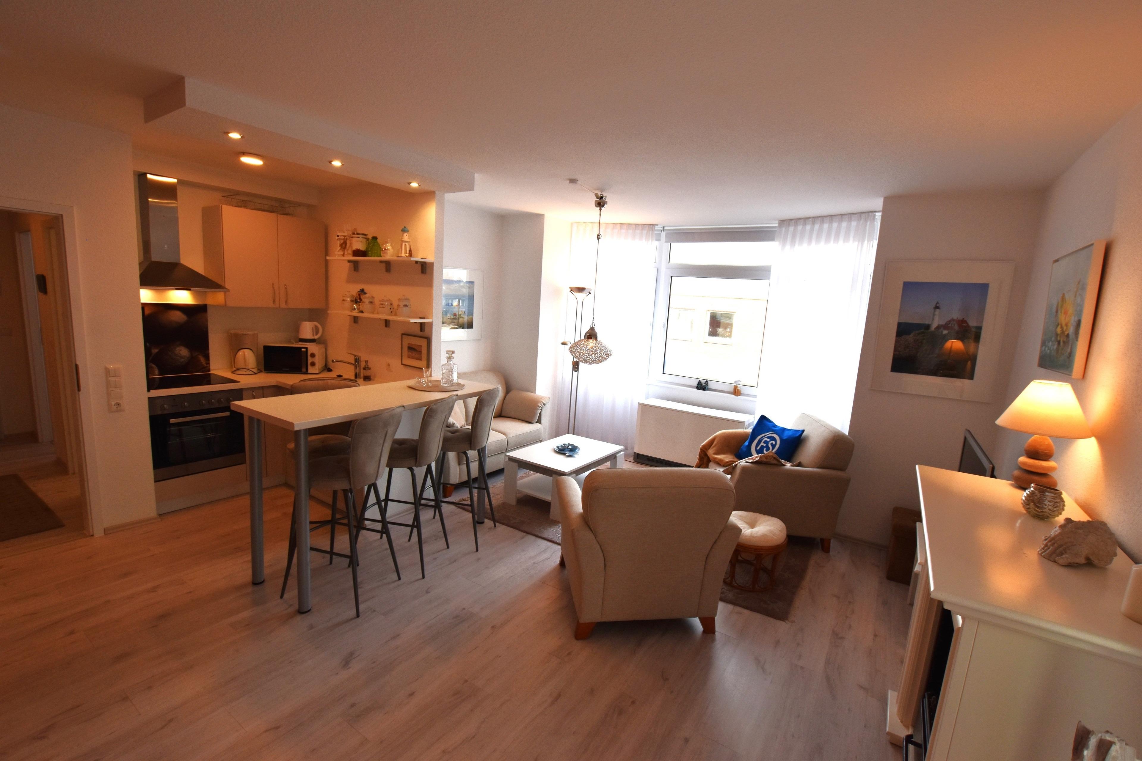 Wir wünschen Ihnen schon jetzt einen schönen Urlaub in Dahme an der Ostsee. Hier erwarten Sie auf ca. 40m² eine Ferienwohnung mit W-LAN, einem Schlafzimmer, einem Duschbad, einem Wohn-/Esszimmer mit Ethanolkamin, offener Küche und direktem Zugang zum Balkon für bis zu 3 Personen.