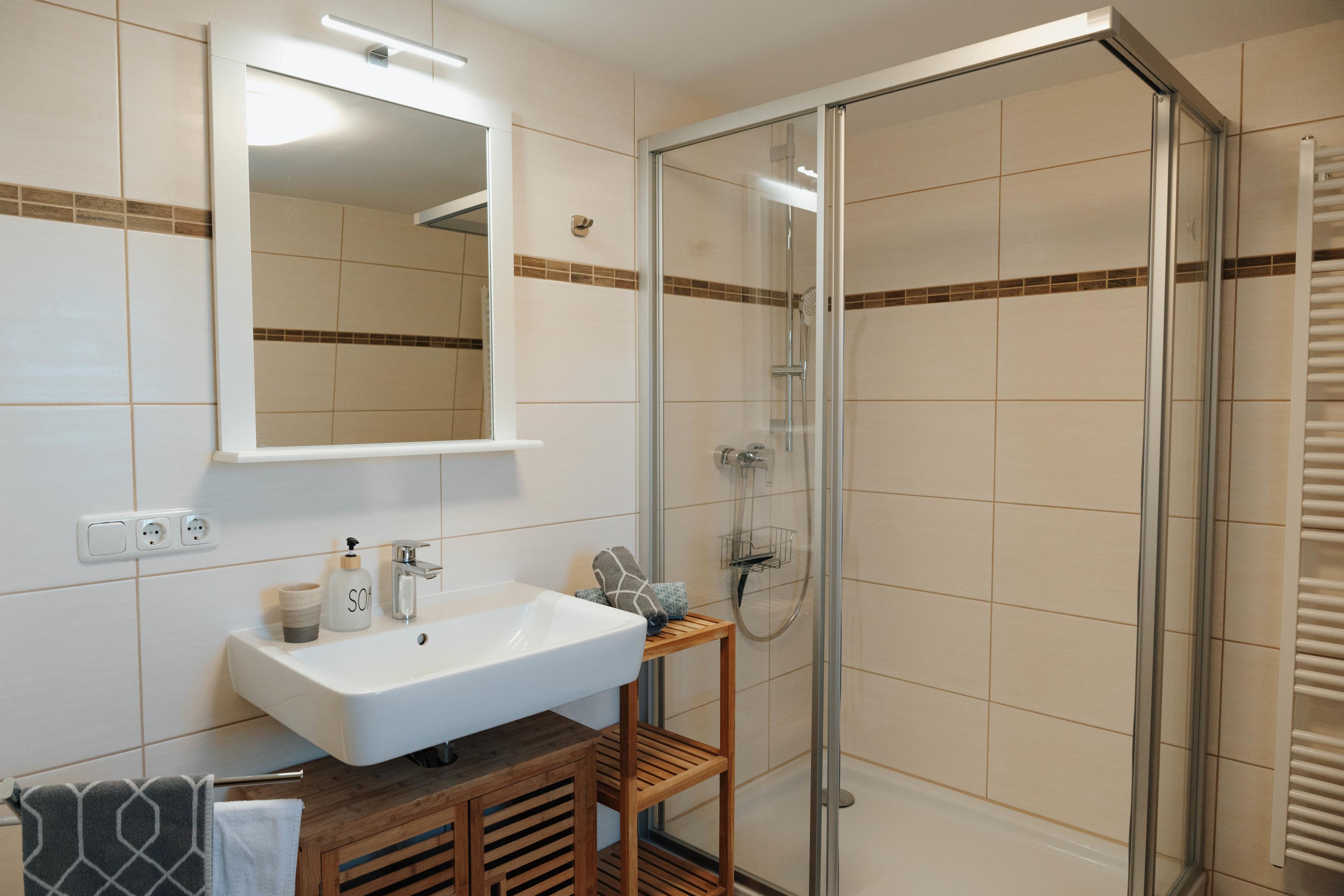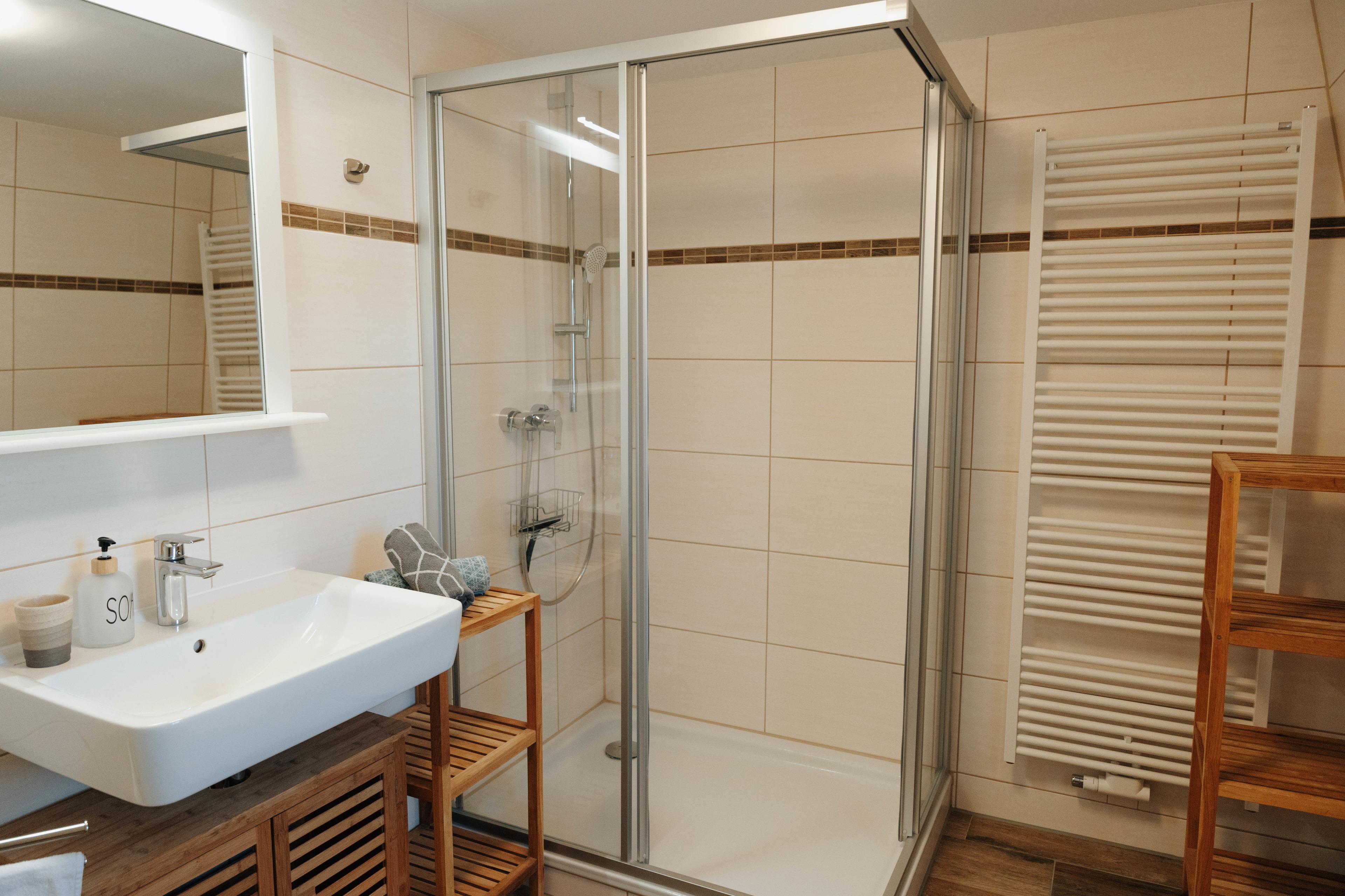 Die Waschmaschine im angrenzenden Schuppen ist ebenfalls sehr praktisch, besonders für längere Aufenthalte.