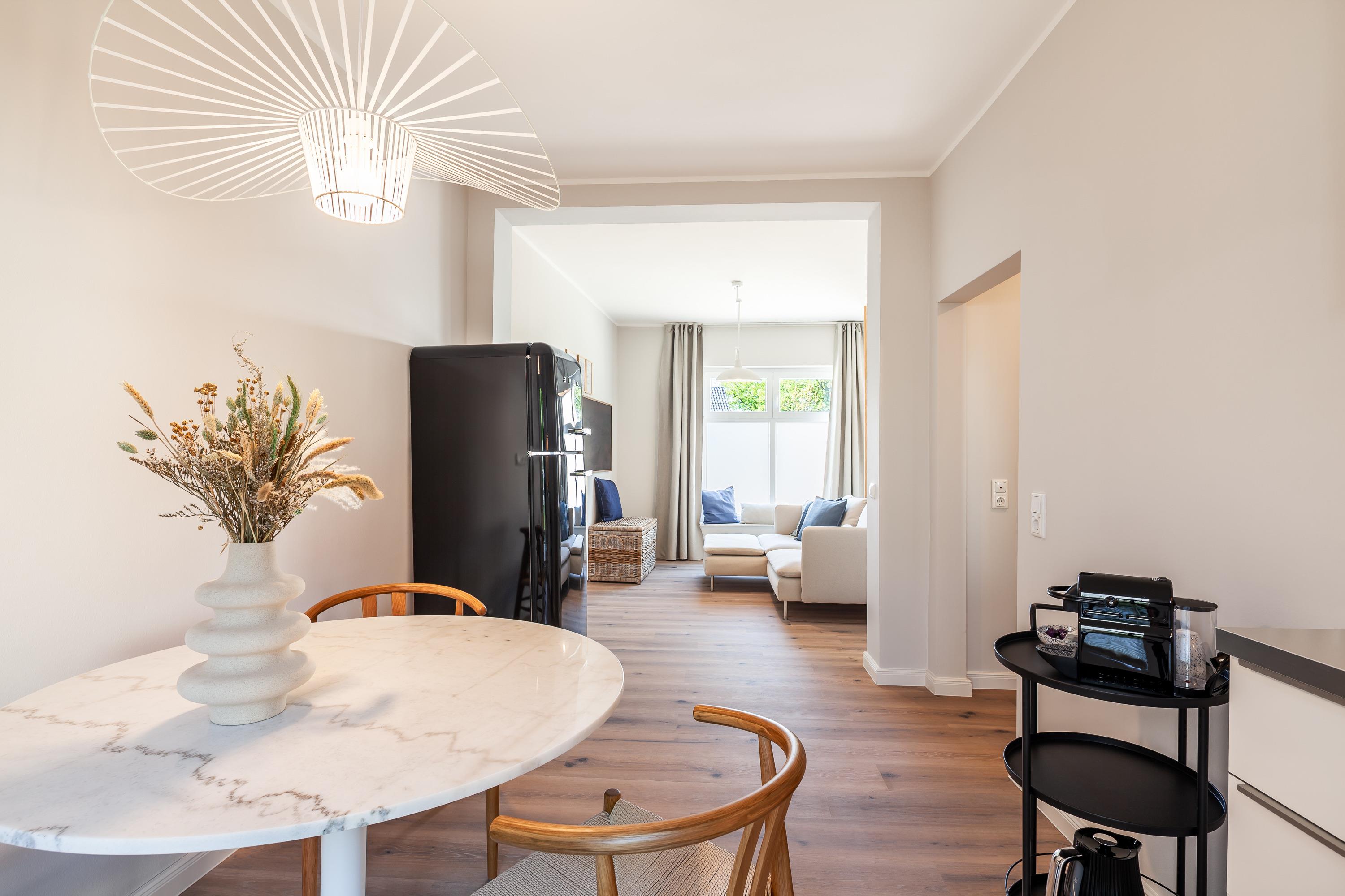 Moderne Ferienwohnung Hygge Nest in Dahme mit skandinavischem Design und Terrasse, nur 100 Meter von der Ostsee entfernt.