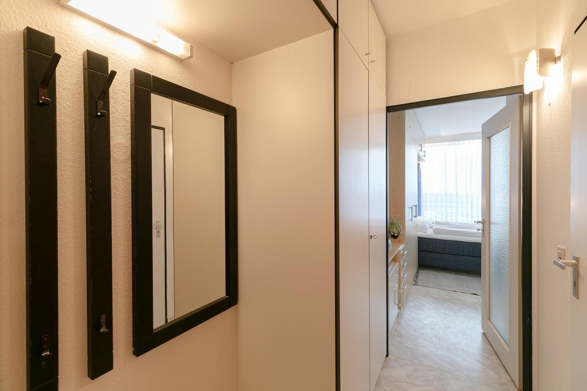 Ein PKW-Tiefgaragenstellplatz ist für Sie reserviert (max. 185 cm Durchfahrtshöhe). Die Nutzung des Hallenbades, der drei Gemeinschafts-Dachterrassen mit Meer- und Landblick sowie des Tischtennisraumes sind für Sie selbstverständlich kostenlos. Ihre mitgebrachten Fahrräder können Sie in einem der 2 Kellerräume in Haus A oder in dem Fahrradraum im Erdgeschoss zwischen Haus A und B abstellen. In Haus D befindet sich auf den Etagen 1 - 4 je ein Gemeinschaftswaschraum mit Waschmaschine und Trockner (gegen Gebühr/Münzgeräte).