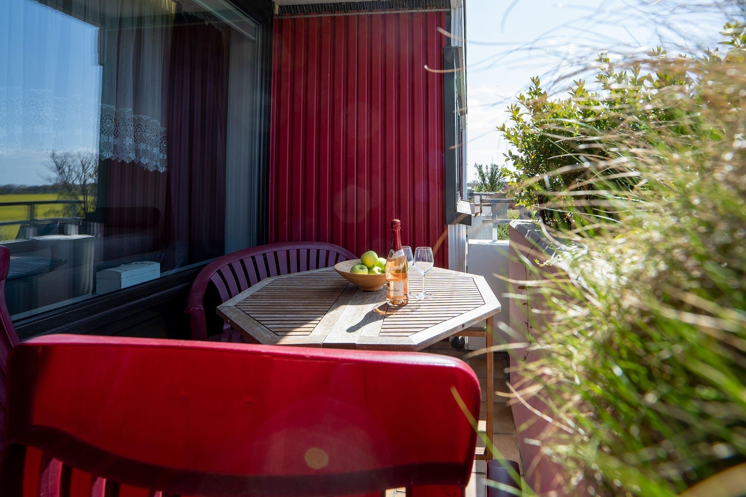 Gemütliche 2-Zimmer-Ferienwohnung mit Balkon und Meerblick in Dahme, strandnah und mit vielfältigen Gemeinschaftseinrichtungen.