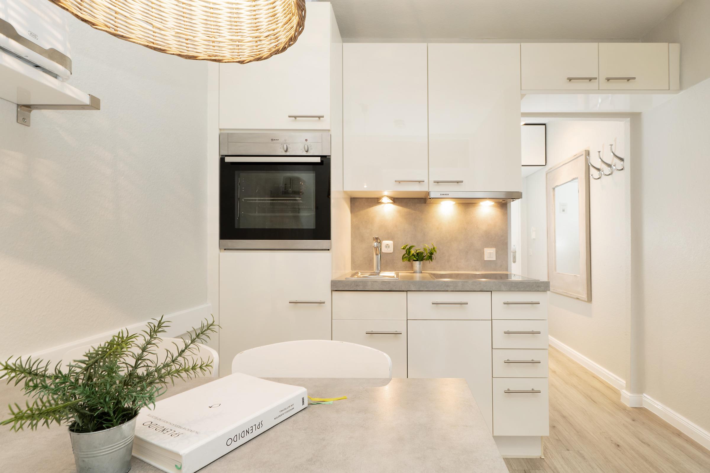 In dieser schönen 2-Zimmer-Ferienwohnung erwartet Sie auf ca. 46 m² ein neu und geschmackvoll eingerichteter Wohn- und Schlafraum mit Doppelbett (2x 90x200 cm), eine gut ausgestattete Küche mit Backofen und Spülmaschine, ein weiterer, separater Schlafraum mit einem Etagenbett (je 90x200 cm) sowie eine Diele und ein Badezimmer.