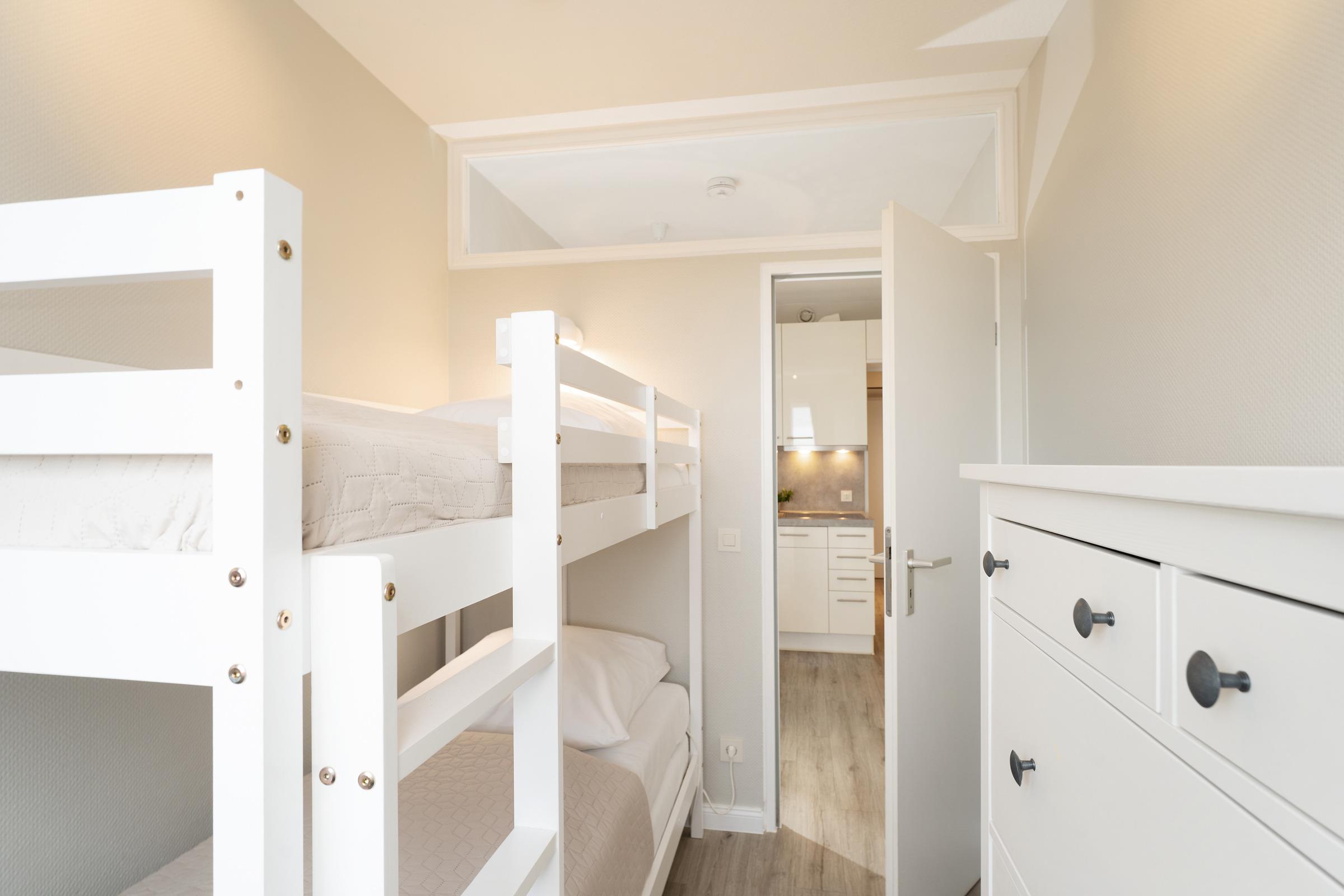 Schlafzimmer: 1 Etagenbett (je 90x200 cm), TV, Verdunkelungsplissees