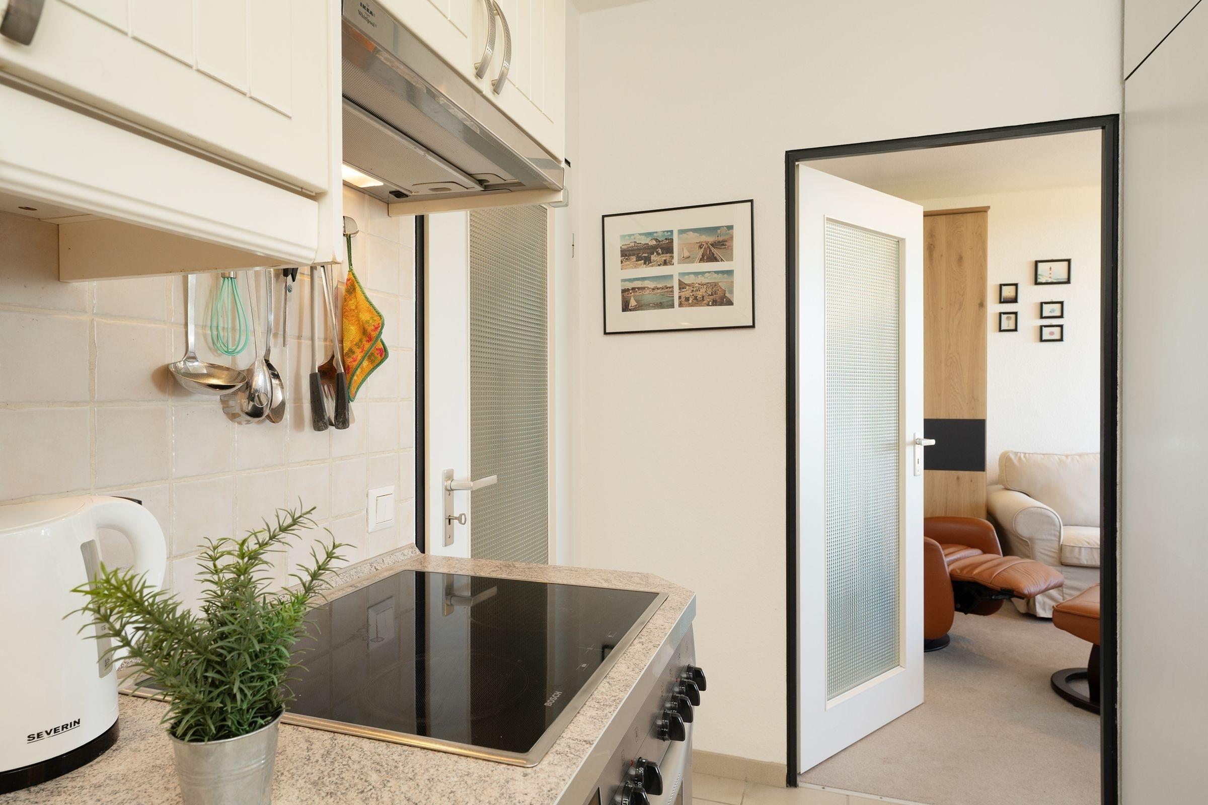 Eine sehr schöne Ferienunterkunft, in der Sie ihren Urlaub von der ersten Minute an genießen werden. Die Wohnung verfügt über einen kombinierten Wohn- und Schlafraum mit Doppelbett (2x 90x200 cm), ein Schlafzimmer mit Schlafsofa (ca. 140-150x200cm), eine gut ausgestattete Küche sowie ein modernes Duschbad. Genießen Sie von Ihrem Balkon die wärmende Nachmittagssonne und unvergessliche Sonnenuntergänge. Der WLAN-Anschluss ist inklusive.