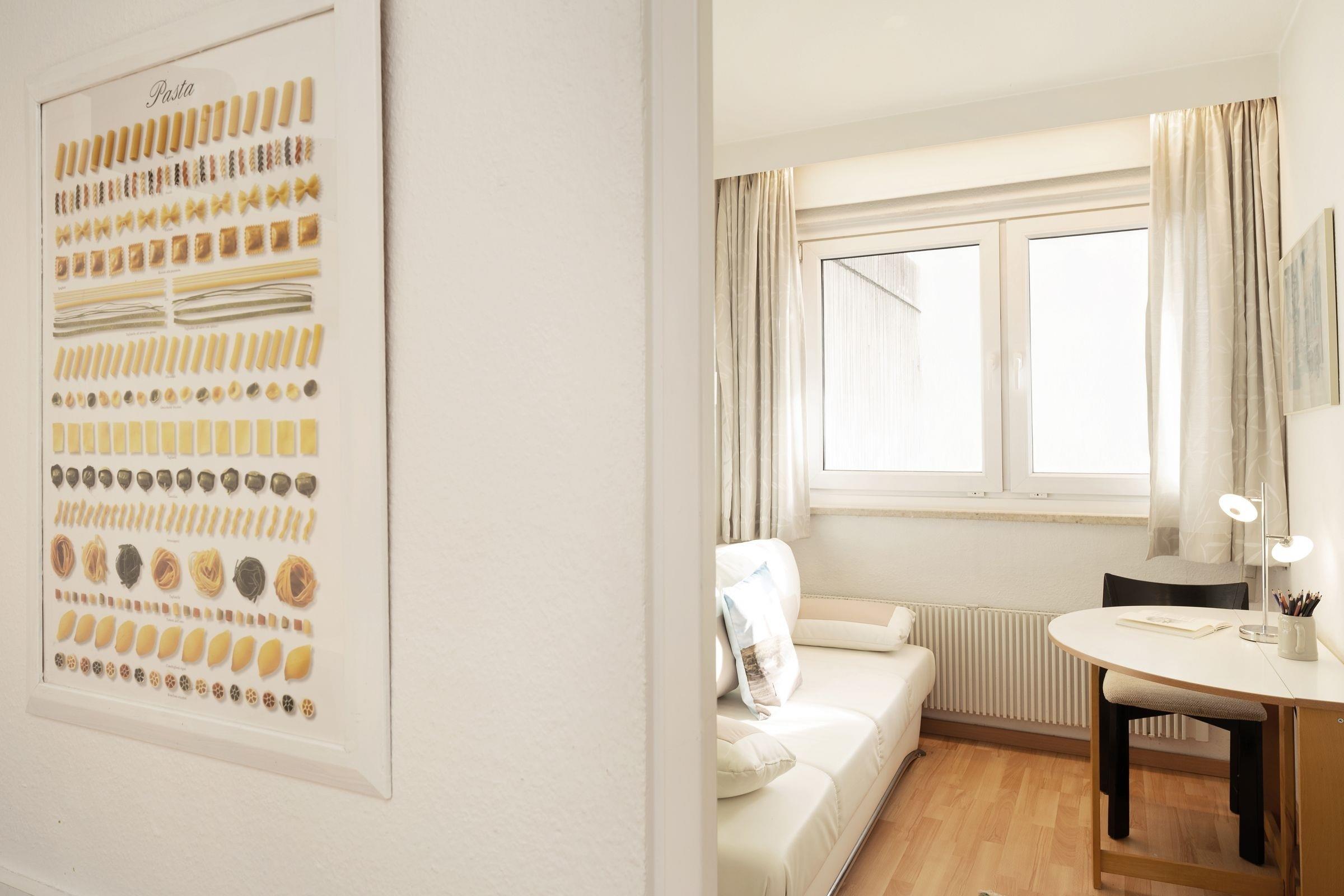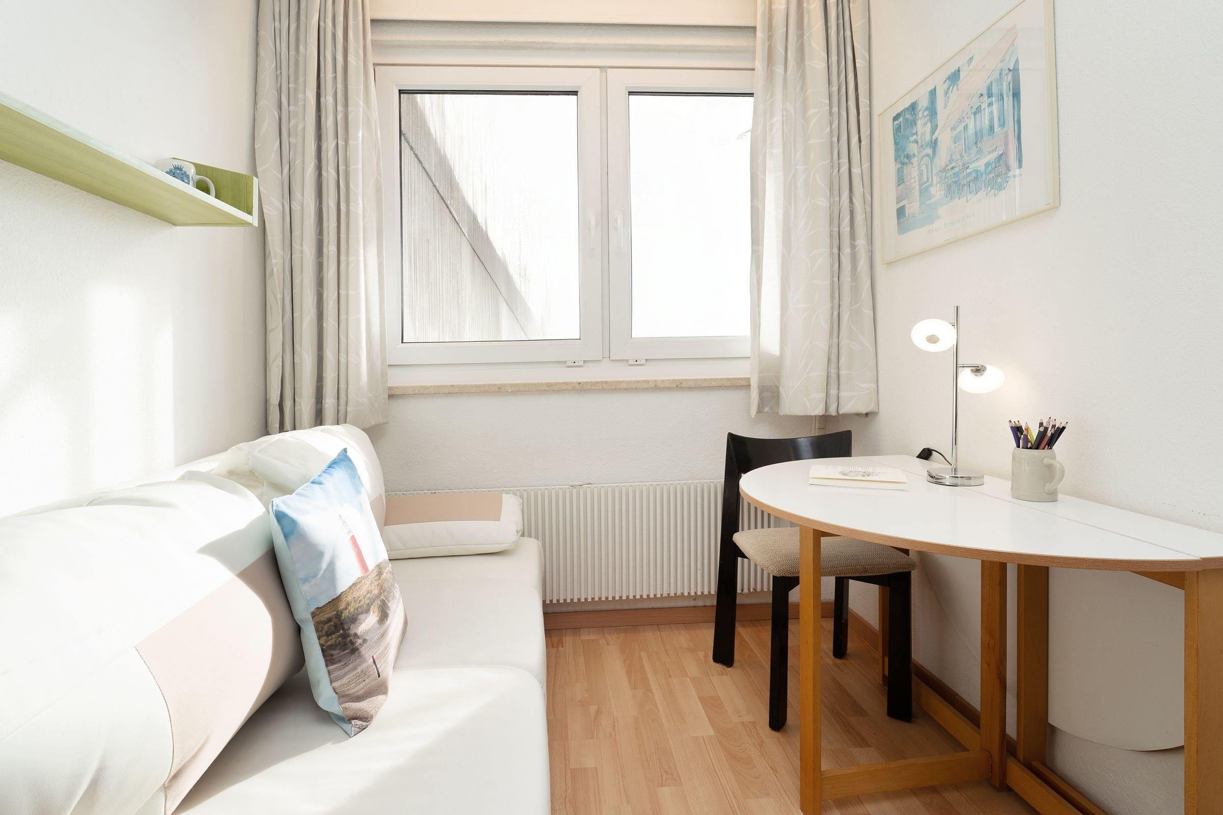 Ein PKW-Tiefgaragenstellplatz ist für Sie reserviert (max. 185 cm Durchfahrtshöhe). Die Nutzung des Hallenbades, der drei Gemeinschafts-Dachterrassen mit Meer- und Landblick sowie des Tischtennisraumes sind für Sie selbstverständlich kostenlos. Ihre mitgebrachten Fahrräder können Sie in einem der 2 Kellerräume in Haus A oder in dem Fahrradraum im Erdgeschoss zwischen Haus A und B abstellen. In Haus D befindet sich auf den Etagen 1 - 4 je ein Gemeinschaftswaschraum mit Waschmaschine und Trockner (gegen Gebühr/Münzgeräte).