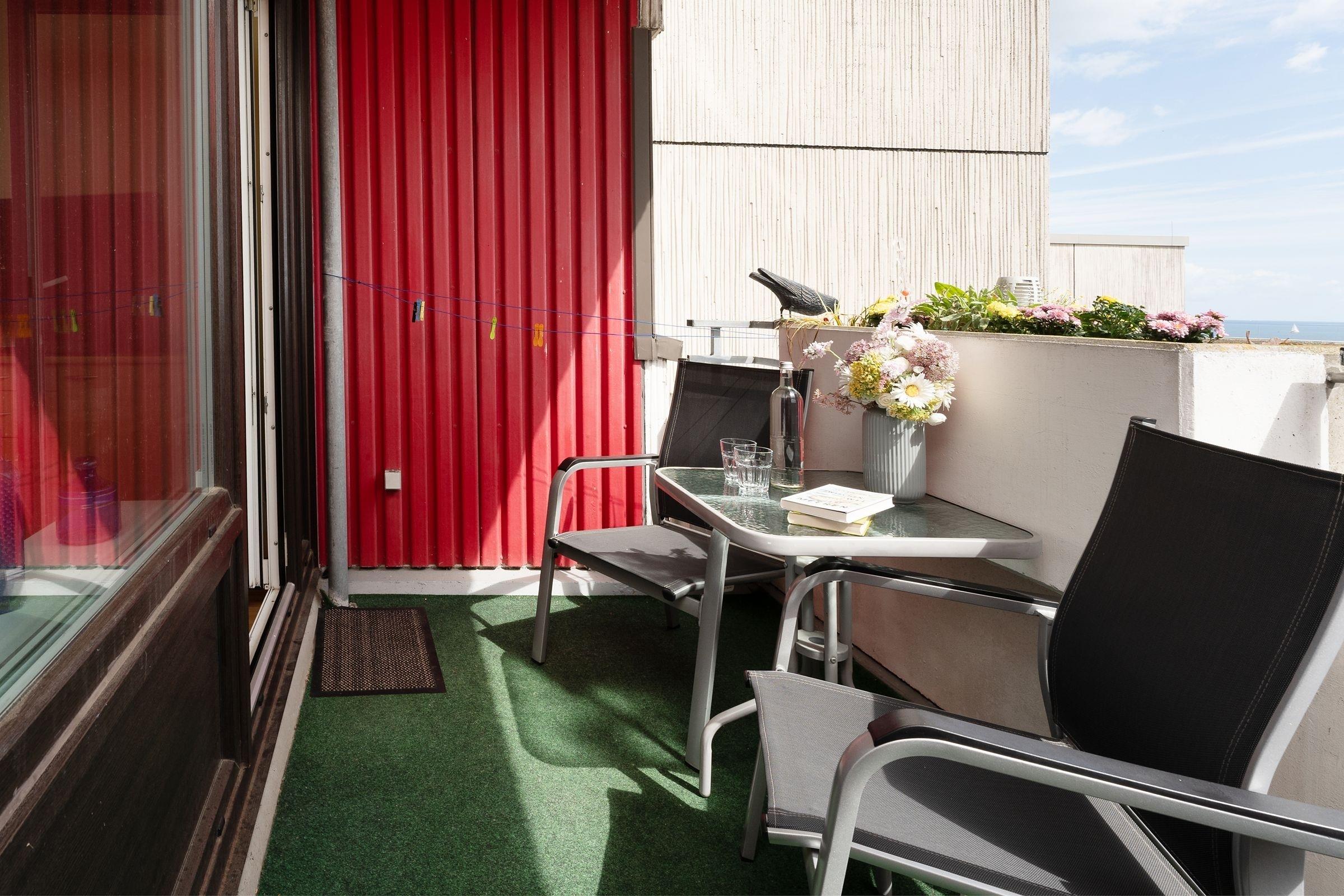 Moderne Ferienwohnung mit Balkon und Meerblick in Dahme, ideal für einen entspannten Ostseeurlaub zu zweit.