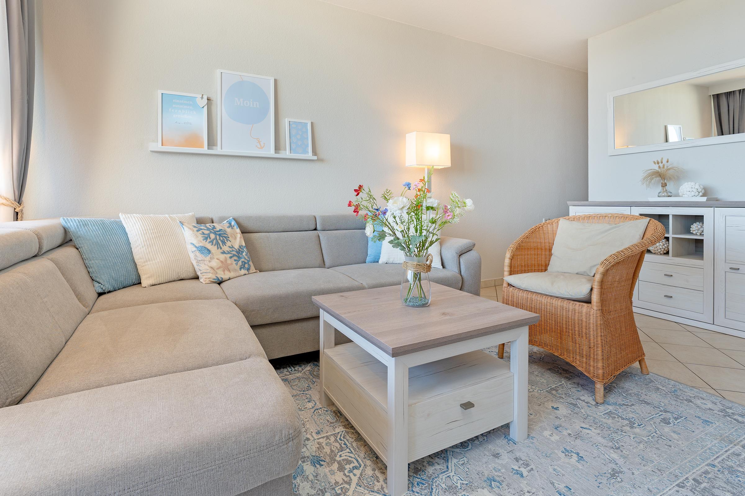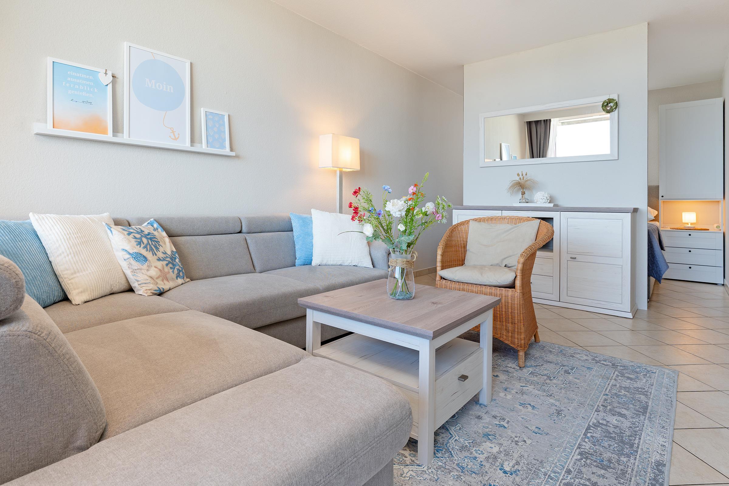 Moderne Ferienwohnung mit Balkon und Meerblick in Dahme, ideal für einen entspannten Strandurlaub.