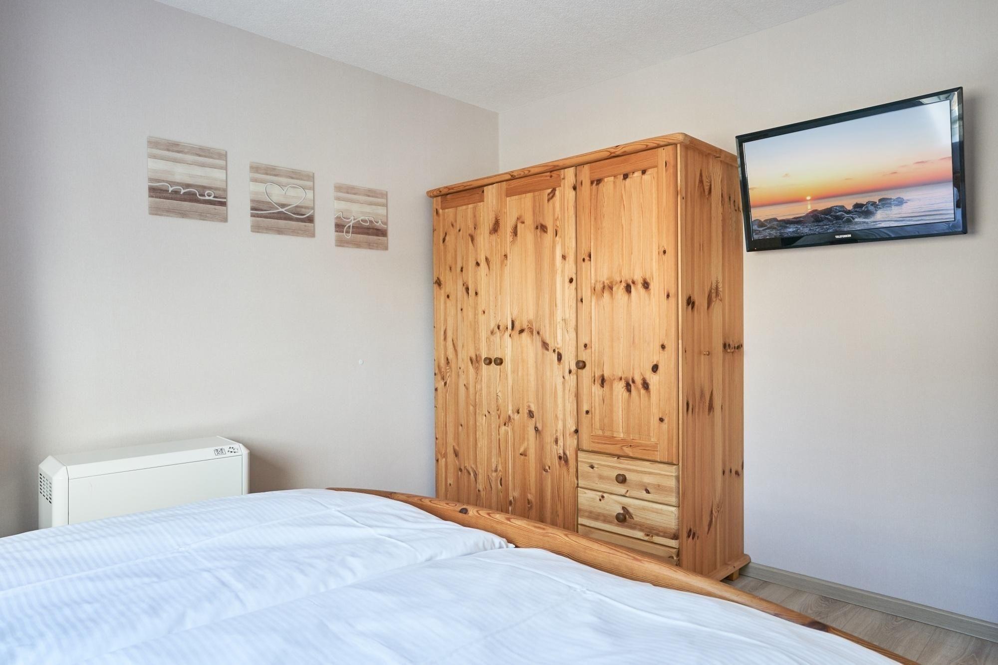 Schlafzimmer 1: 1 Doppelbett (2x 90x200 cm), TV, Verdunkelung (Plissee).