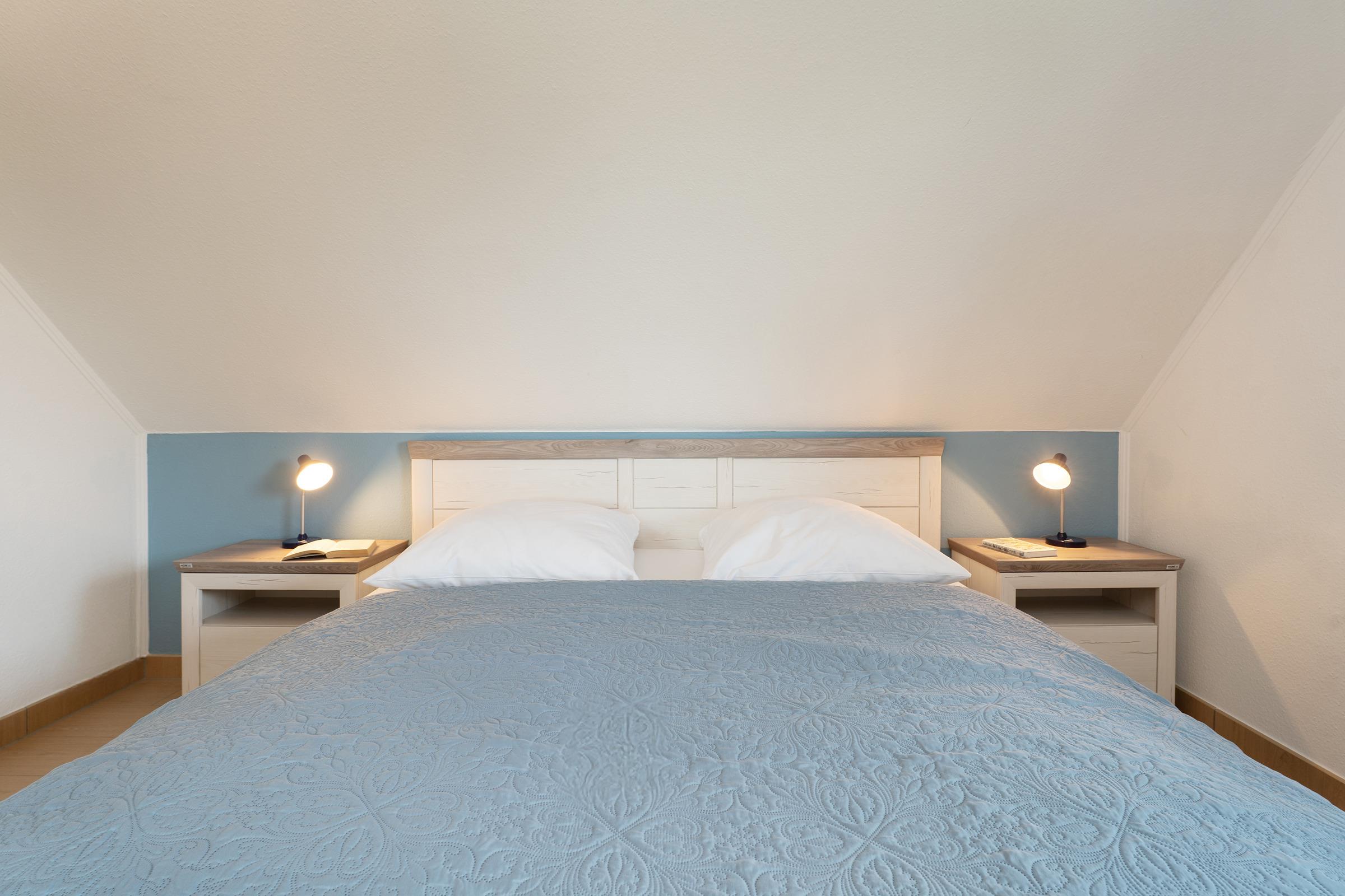 Der Wohn-/Essbereich mit offener Küche lädt zum gemeinsamen Essen, Fernsehen und erholsamen Urlaubsstunden ein. In der offenen voll ausgestatteten Küche finden Sie alles, um sich und Ihre Lieben kulinarisch zu verwöhnen. Die Ferienwohnung ist mit einem separaten Schlafzimmer mit Doppelbett (180x200 cm), einem Schlafzimmer mit 2 Einzelbetten (je 90x200 cm) und einem bequemen Schlafsofa (140x200 cm) im Wohnbereich ausgestattet. Das hell geflieste Badezimmer mit Dusche rundet das Angebot dieser Ferienwohnung ab.
