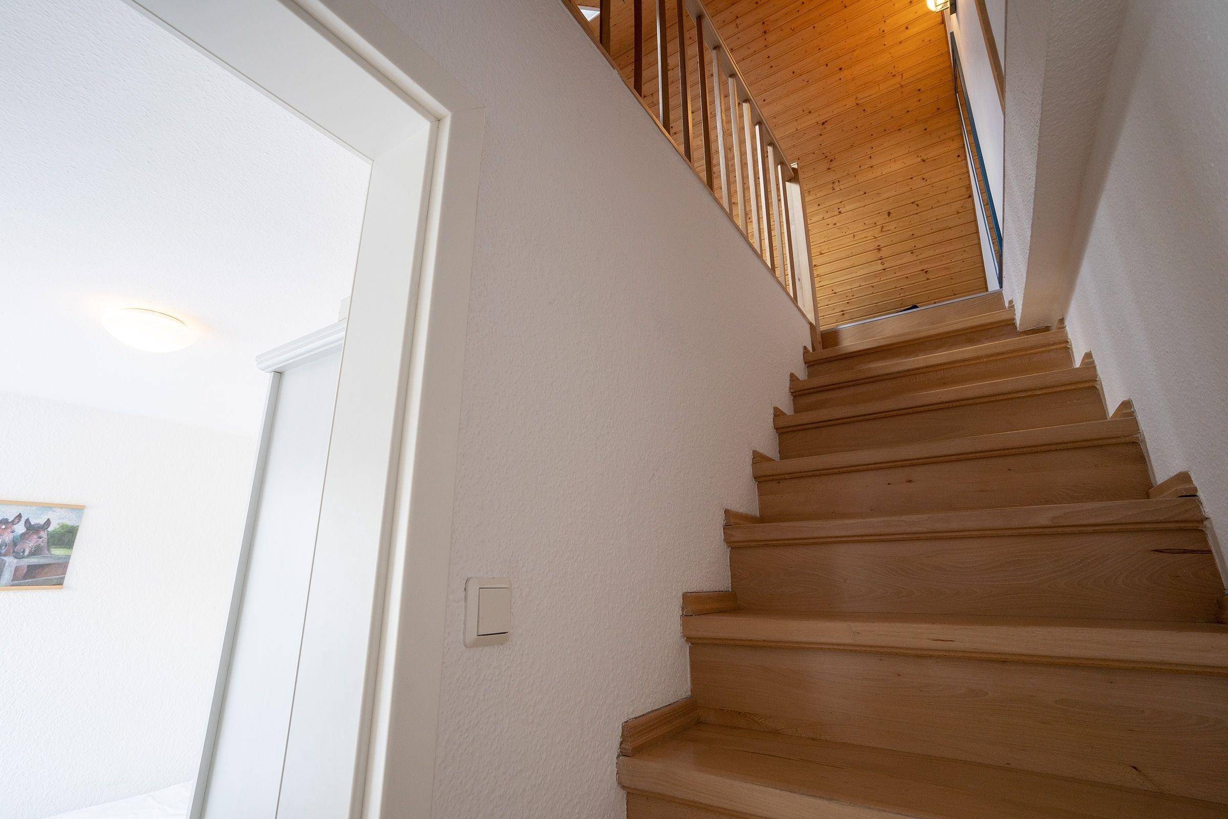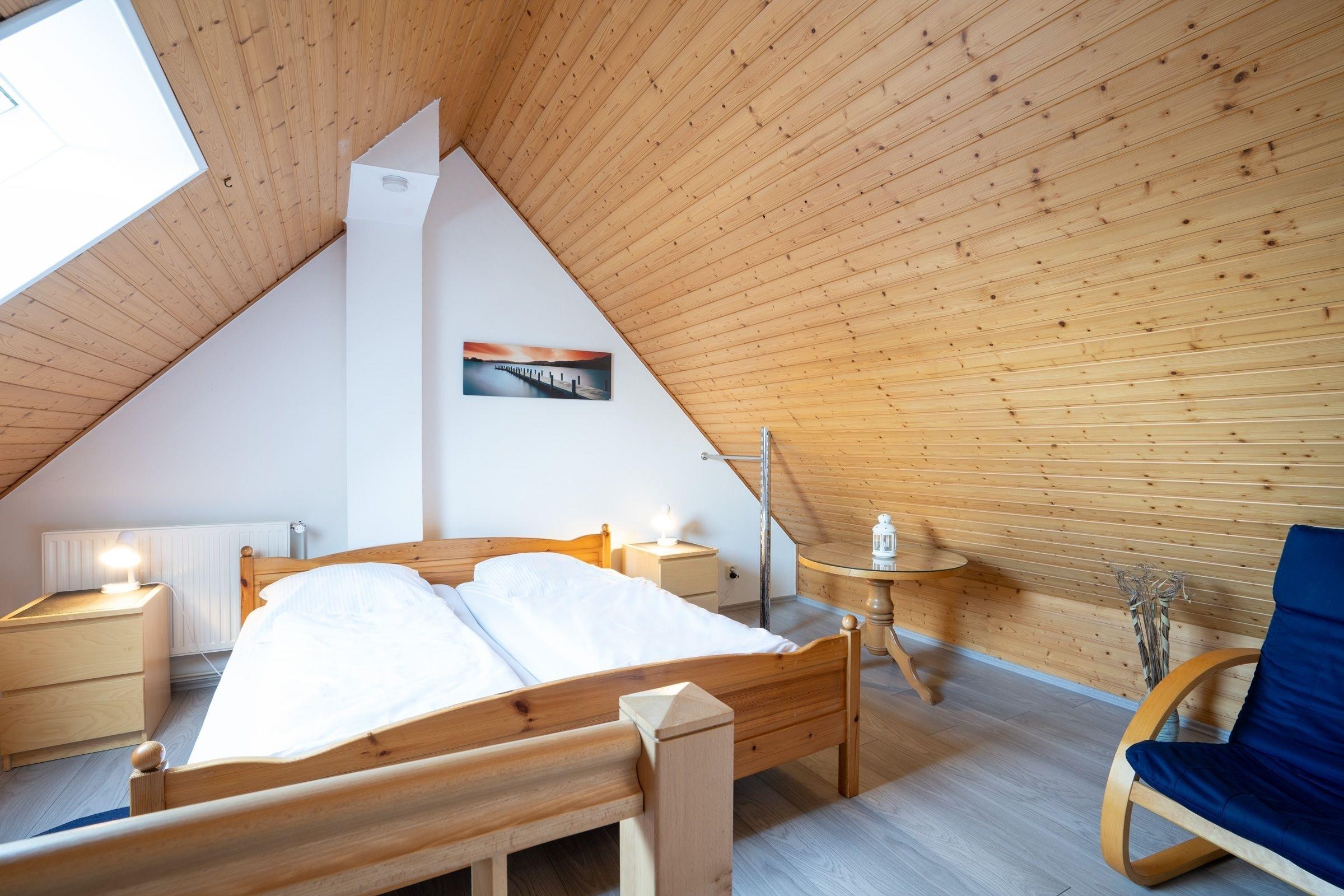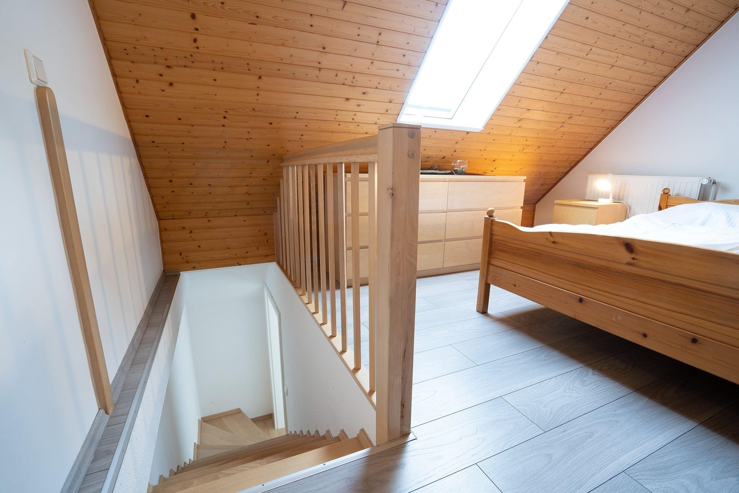 Zwei weitere, lichtdurchflutete Schlafräume finden Sie in der ersten Etage. Ebenso das Dachgeschoss ist ausgebaut und mit weiteren Schlafmöglichkeiten, sowie einem zweiten Duschbad mit WC ausgestattet.