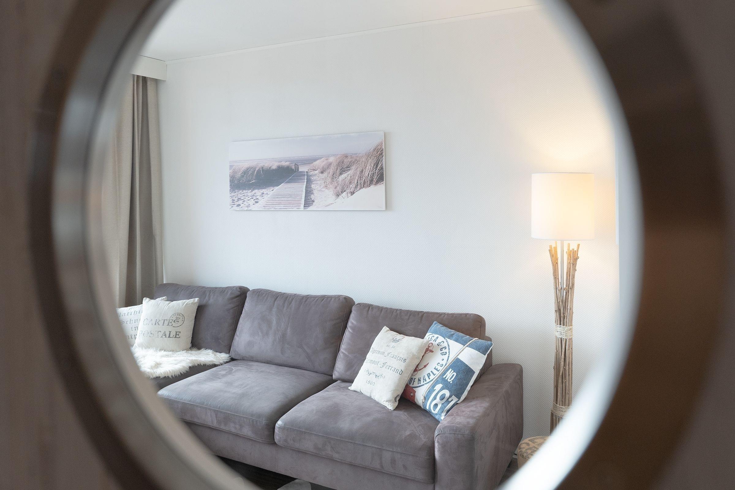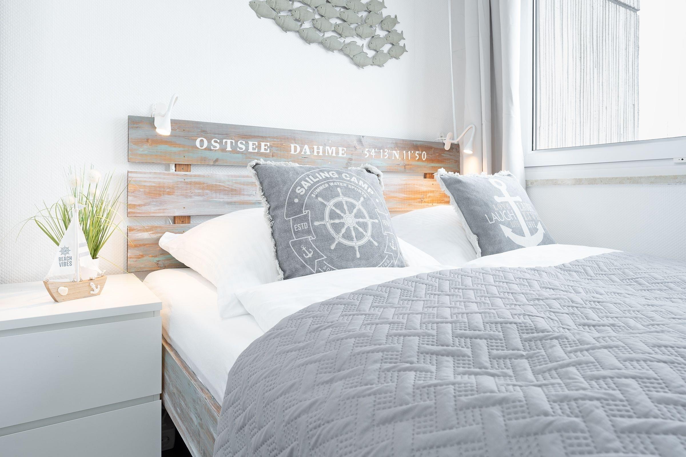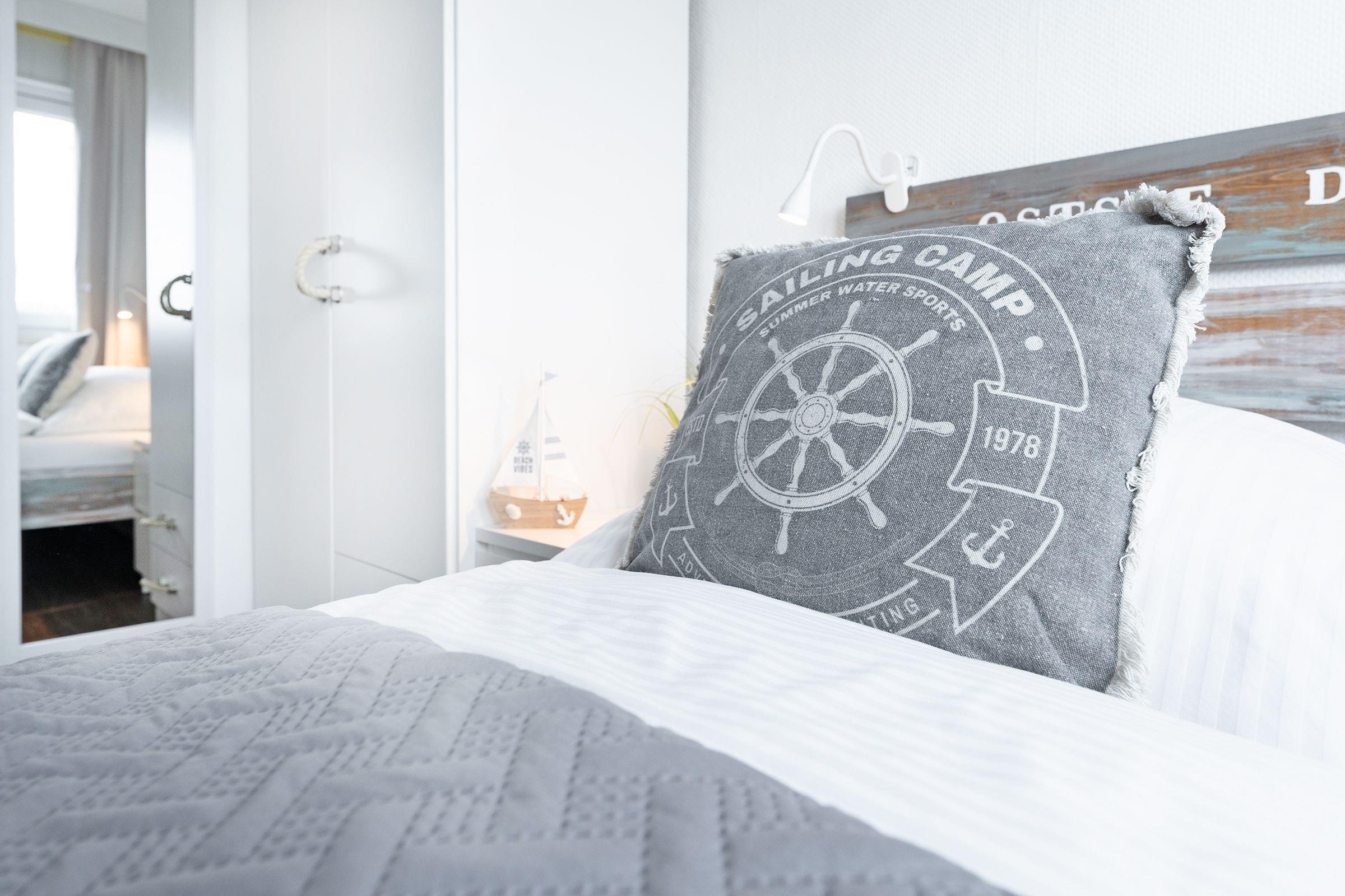 Der stilsichere Wohn- und Schlafbereich überzeugt in maritimem Design. Kuscheln Sie sich auf das großzügige Sofa und lassen Sie den Abend vor dem Smart-TV mit Soundbar bei einem spannenden Film ausklingen. Auf dem überdachten Balkon lässt es sich bei Sonnenschein, aber auch bei etwas frischeren Temperaturen gut aushalten. Der Schlafbereich ist charmant durch einen Eckkleiderschrank abgetrennt - hier können Sie sich nach einem langen Tag an der frischen Ostseeluft entspannt in das hochwertige Doppelbett (ca. 2x 90x200cm) kuscheln. Im separaten, kleinen Schlafzimmer wartet ein weiteres Doppelbett (2x 80x200 cm), ein Kleiderschrank sowie ein eigener TV auf Sie. Die Wohnung verfügt über ein Vollbad und eine gut ausgestattete Einbauküche mit modernsten Geräten inklusive Geschirrspüler, Heißluftfriteuse und 4-Platten-Cerankochfeld.