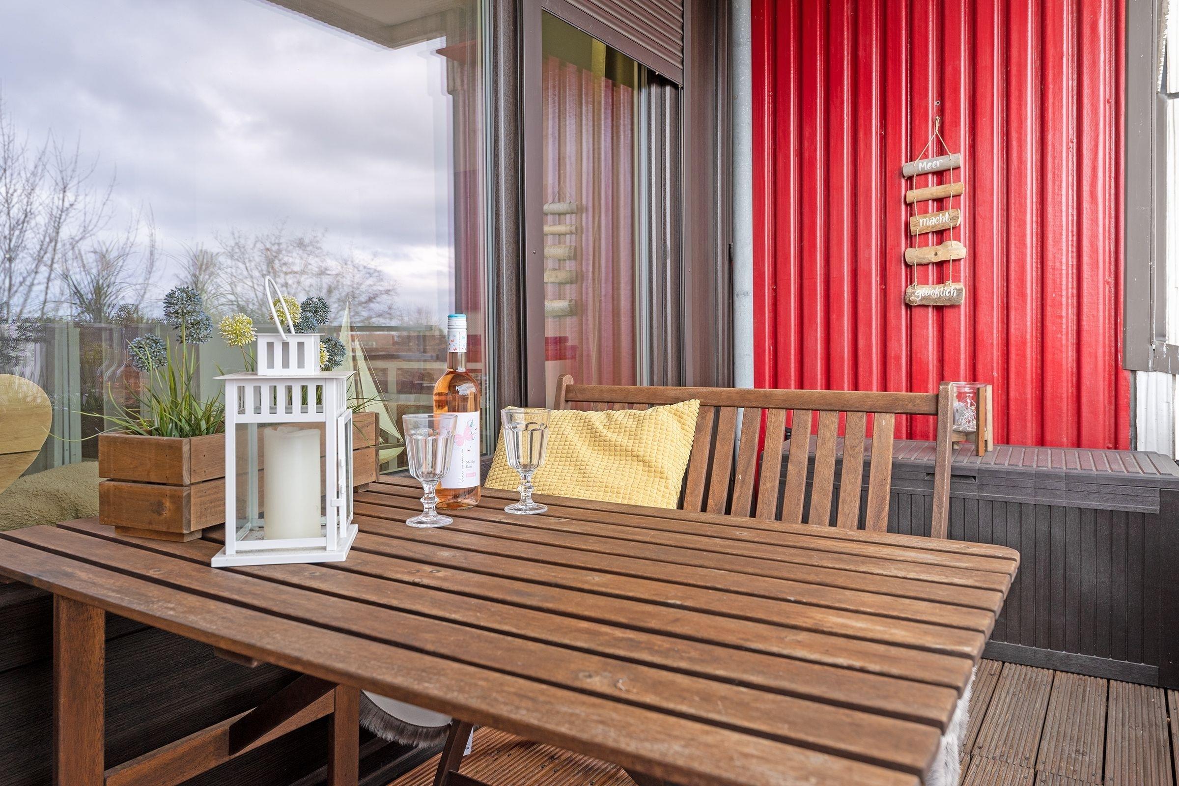 Moderne Ferienwohnung mit Balkon und Meerblick, nur wenige Meter vom Strand in Dahme entfernt.