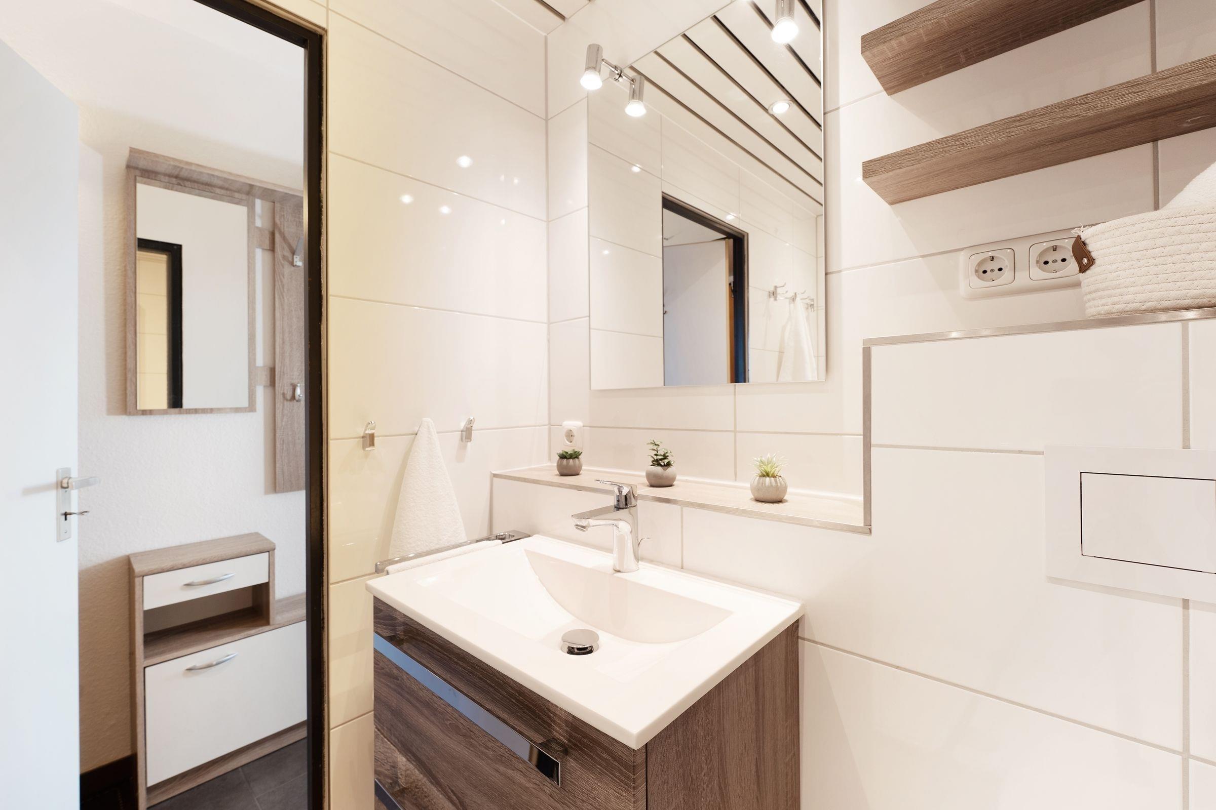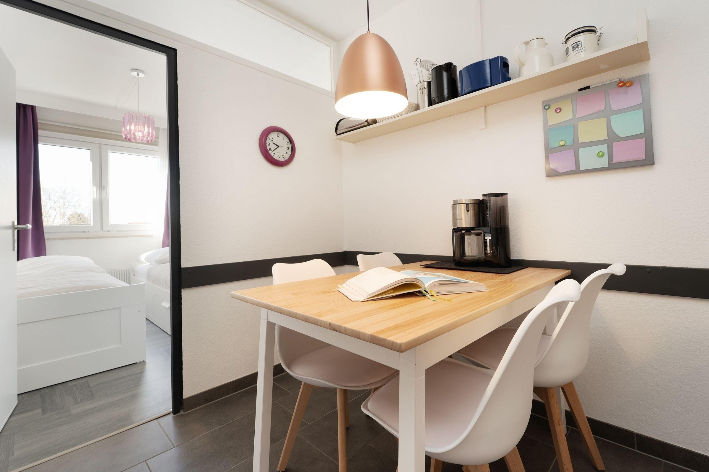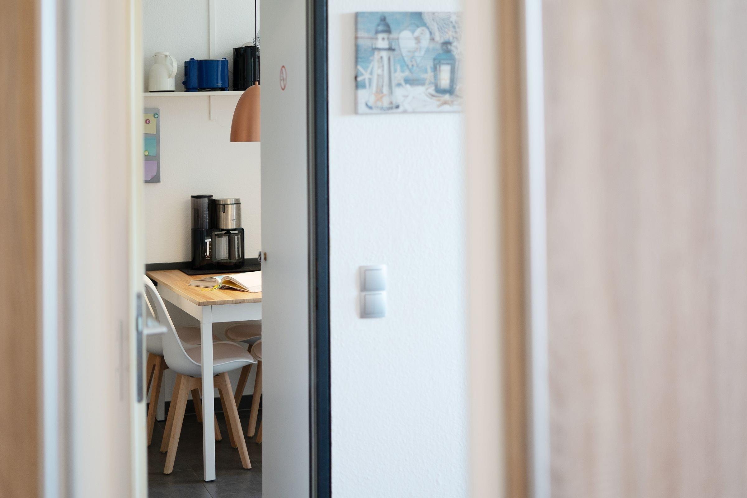 Das Herzstück der Wohnung bildet der kombinierte Wohn- und Schlafraum mit einem Bett (180x200 cm) und einer großen Sofalandschaft sowie dem direkten Balkonzugang. Der möblierte Balkon mit Strandkorb ist nach Süden ausgerichtet und garantiert Ihnen viele schöne Sonnenstunden. Für Unterhaltung im Urlaub sorgen ein Fernseher mit DVD-Player und ein Blu-ray-Player. Das separate Schlafzimmer ist mit zwei Einzelbetten (je 80x200 cm) und einem zweitem Fernseher möbliert. Die separate Küche ist mit Annehmlichkeiten wie z. B. einem Backofen in praktischer Arbeitshöhe, einer Spülmaschine, einem Kühlschrank sowie einer gemütlichen Essecke gut ausgestattet. Durch den Flur gelangen Sie in das komfortable, innenliegende Badezimmer mit bodengleicher Dusche und Handtuchwärmer. Von der Wohnung aus sind es nur wenige hundert Meter bis zum idyllischen Ostseedeich, Promenade und feinsandigem Strand. Auch bis zur Ortsmitte mit diversen Einkaufsmöglichkeiten, Bäckerfilialen, Cafés und Restaurants ist es nicht weit.