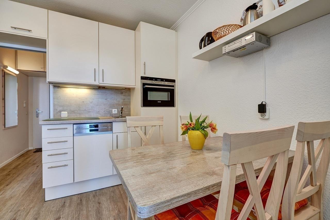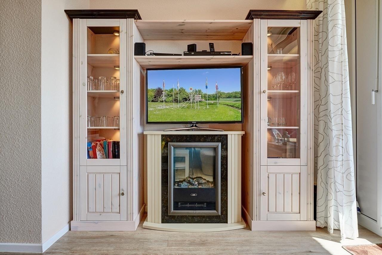 Der Wohn- und Schlafbereich verfügt über ein Doppelbett (2x 90x200 cm), einen Kleiderschrank, eine Couch sowie über einen Flachbildfernseher. Im separaten Schlafzimmer mit Fenster befindet sich ein Kojenbett (je 90x200 cm), ein Kleiderschrank und ein weiterer Flachbildfernseher. Zudem ist die Wohnung mit einer modernen Küche inklusive Spülmaschine, Backofen und Kühlschrank mit 4*-Gefrierfach ausgestattet. Eine Diele und ein modernes Badezimmer mit Badewanne sind ebenfalls vorhanden. Im Wohnzimmer sorgt ein Elektrokamin für Gemütlichkeit während Sie das Digitalfernsehen mit vielen Programmen in HD oder Ihre Lieblingsmusik über die Dolby-Surround-Anlage von der Couch aus genießen können. Ein besonderes Highlight ist die Spielekonsole Playstation 3 mit diversen Spielen. Der WLAN- und Telefonanschluss ist selbstverständlich inklusive. Beide Schlafräume lassen sich nachts angenehm abdunkeln.