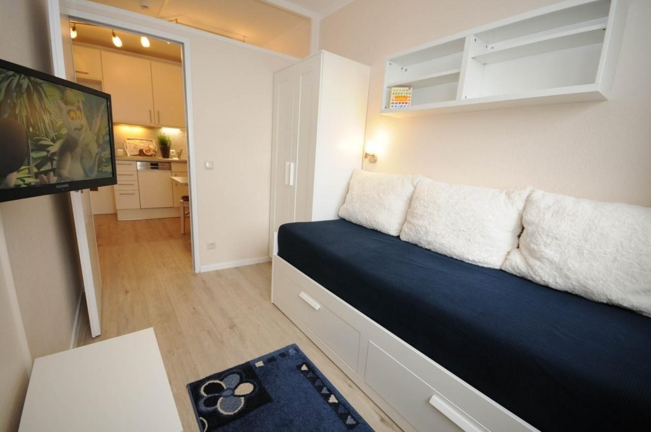 Kinderzimmer: 1 Kojen Bett (2x 90x200 cm), TV, Kleiderschrank, Verdunklung (Innenrollos)