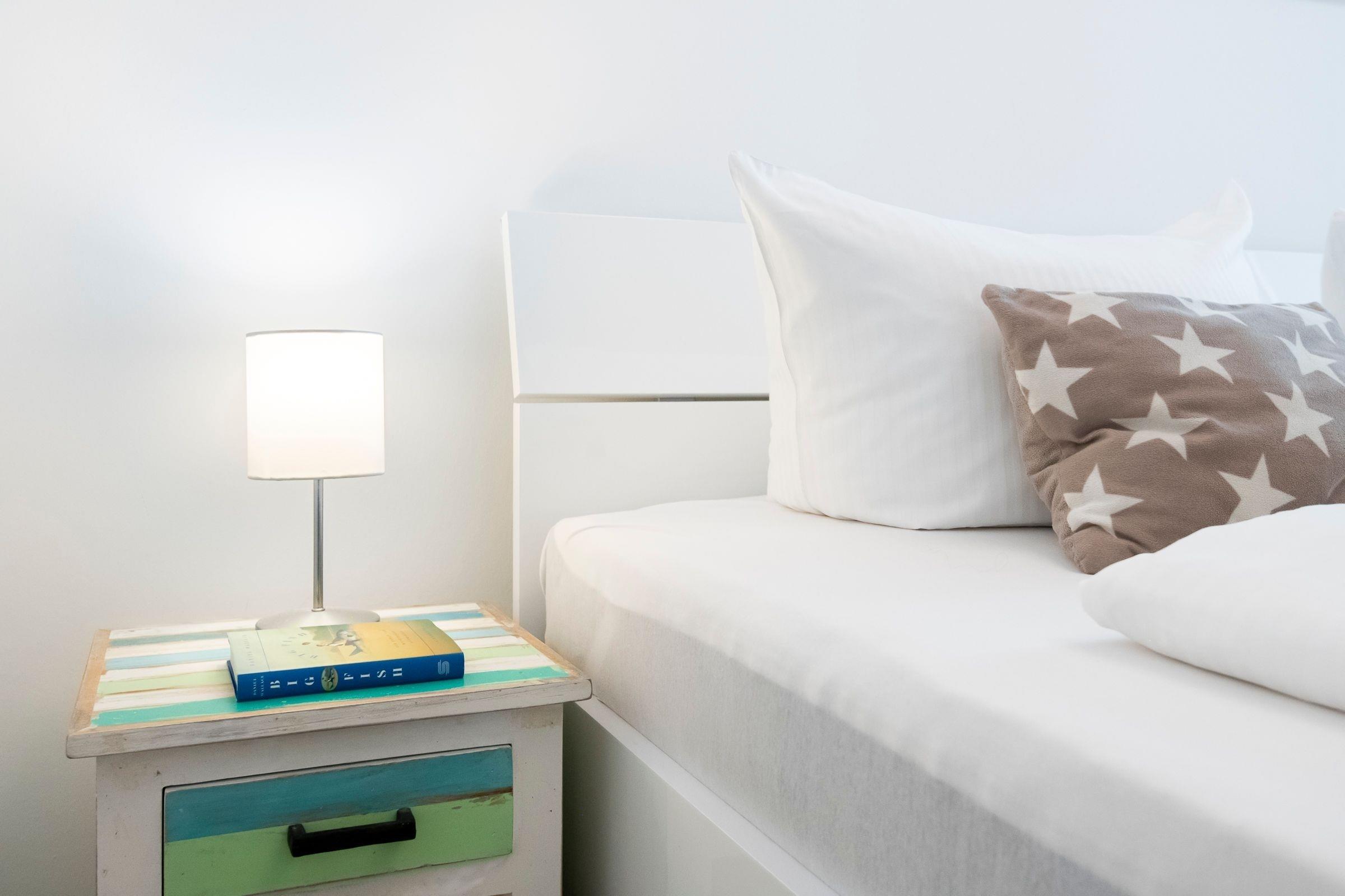Unsere schöne 3-Zimmer-Ferienwohnung ist hell und modern eingerichtet und eignet sich für eine Belegung mit max. 4 Personen. Die Wohnung befindet sich in der 1. Etage und verfügt über einen möblierten Balkon. Im Frühjahr 2021 wurden die Küche und das Badezimmer für Sie renoviert und neu ausgestattet.