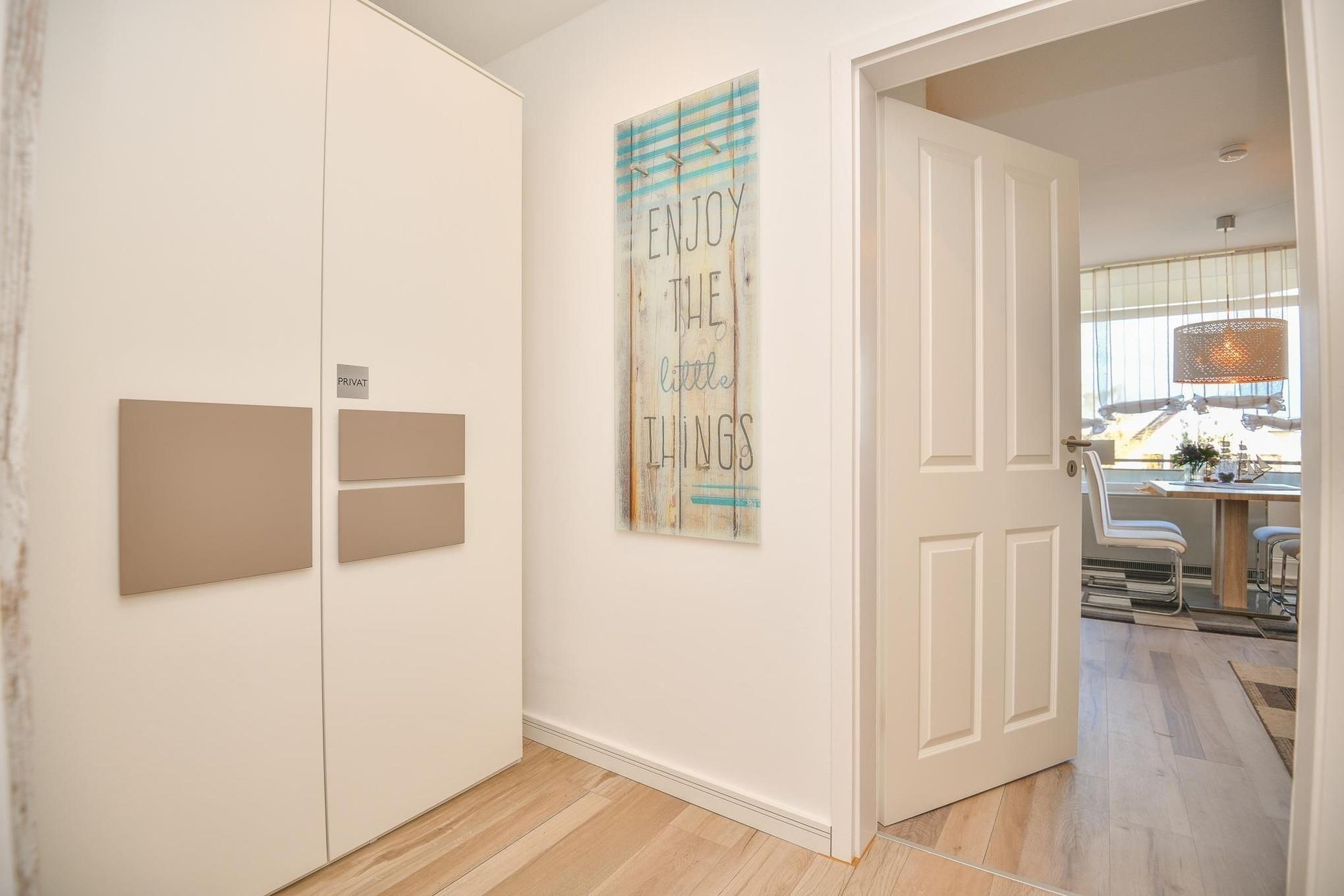 Die Schlüsselübergabe erfolgt über einen Tresor am Kraushaar Ferienwohnungen Servicebüro, Lange Wiese 4, 23747 Dahme.