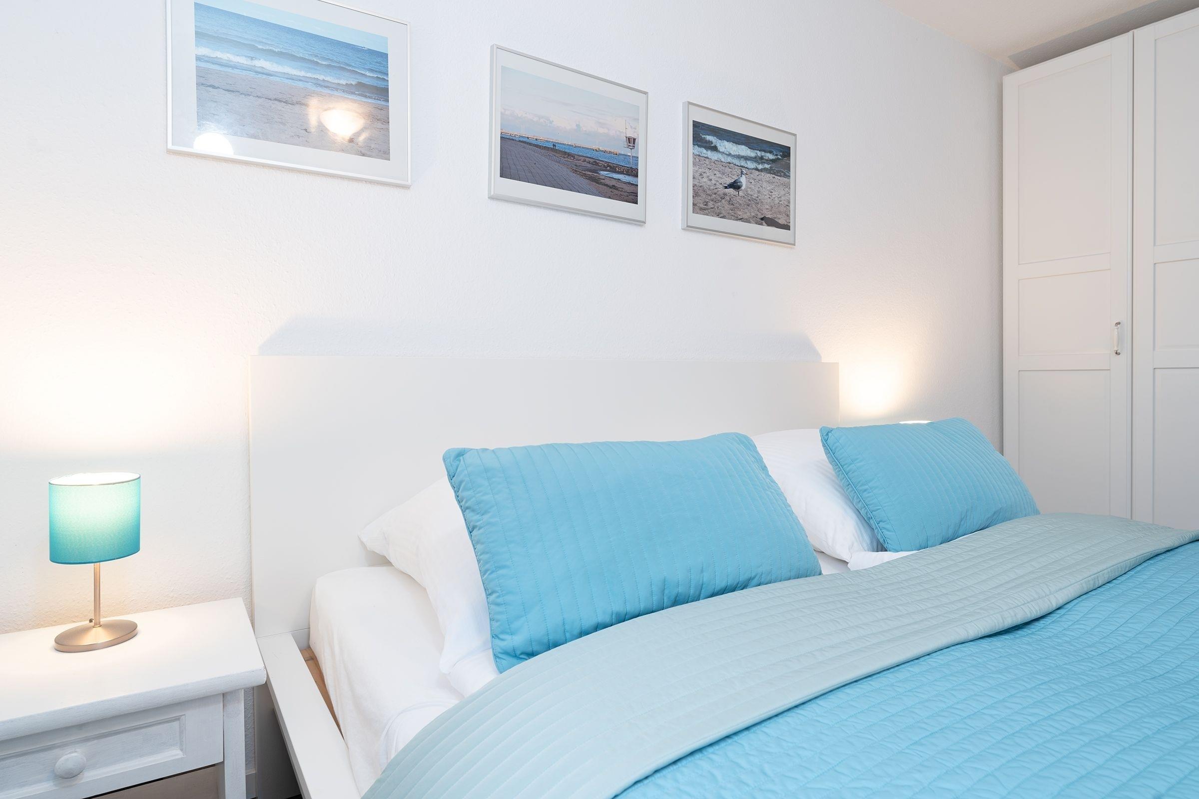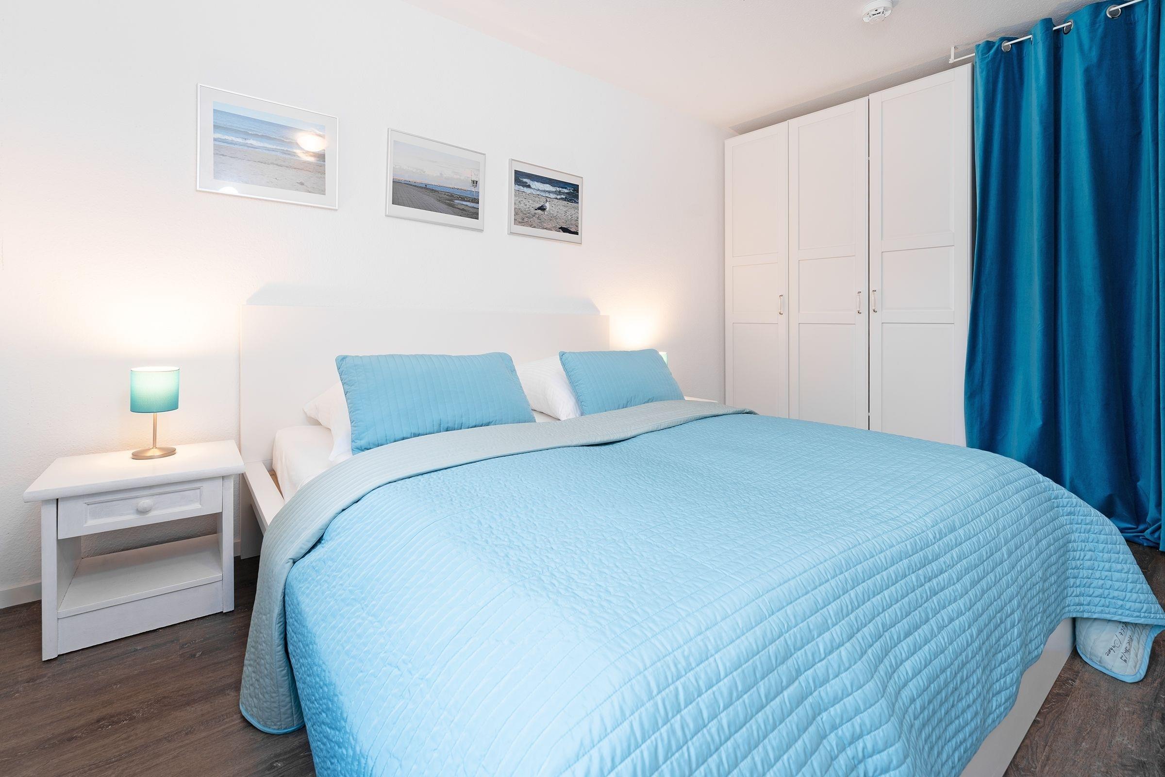 Diese ebenerdige Wohnung verfügt über einen Wohn- und Essbereich mit Schlafcouch (140x200 cm) und einer Sitzecke sowie einem zusätzlichen Schlafzimmer mit Doppelbett (2x 90x200 cm), einem Bad mit Dusche und einem Flur mit Garderobe. Die integrierte Küchenzeile ist gut ausgestattet. Ein Hochstuhl steht den kleinen Gästen hier kostenfrei zur Verfügung. Auf der Terrasse werden Sie die Ruhe genießen und entspannen. In der Saison von ca. Mai bis September steht Ihnen je nach saisonalen Witterungsverhältnissen ein Saisonstrandkorb am Strand zur Verfügung.