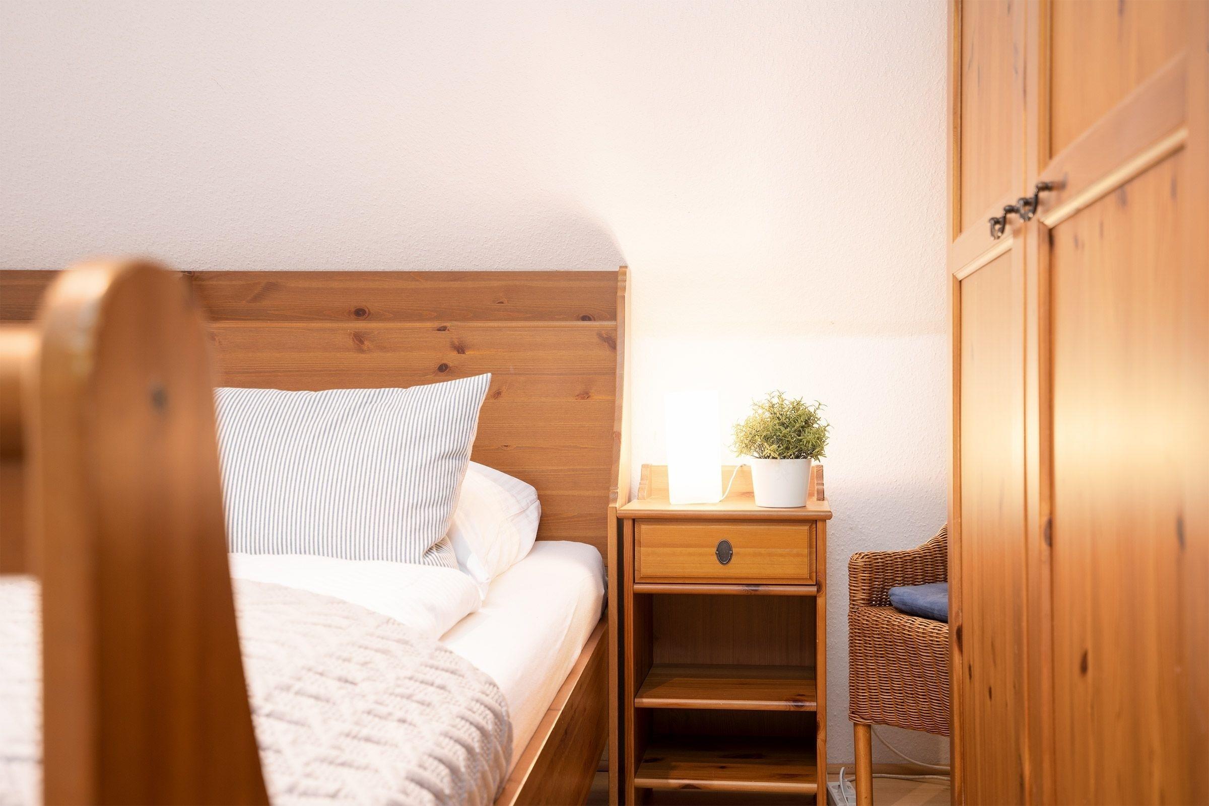 Schlafzimmer 2: 2 Einzelbetten (90x200 cm), TV, Kleiderschrank, Verdunkelung (Rollo, Plissees)