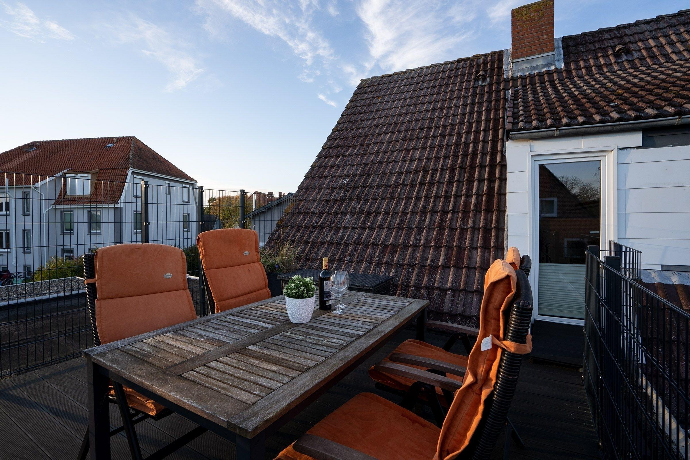 Gemütliche Ferienwohnung mit Dachterrasse nahe Ostseestrand in Dahme bietet Komfort und WLAN für entspannte Urlaubstage.