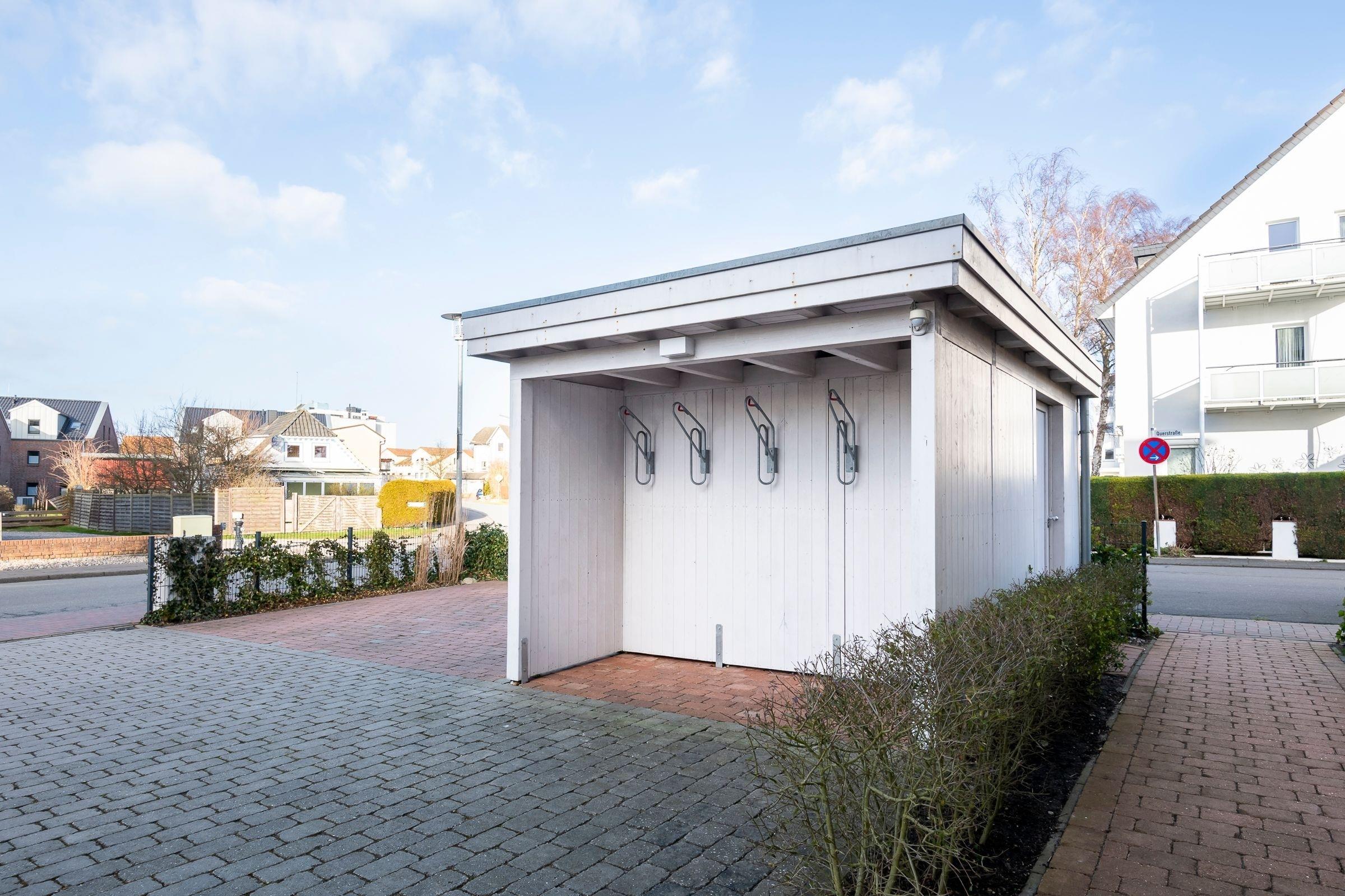 Ein PKW-Außenstellplatz direkt am Haus ist für Sie reserviert. Für mitgebrachte Fahrräder sind überdachte Fahrradständer am Haus und ein abschließbarer Fahrradabstellraum vorhanden.
