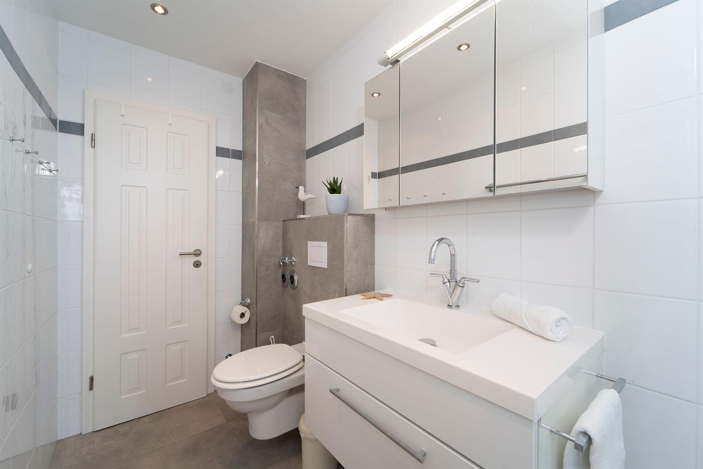 Im Keller des Hauses befindet sich eine Gemeinschafts-Waschküche mit Waschmaschine und Trockner. Diese schöne Anlage liegt direkt am Deich und verfügt ferner über einen Fahrstuhl, ein Hallenschwimmbad und eine Sauna. Der Strand und die Promenade liegen Ihnen zu Füßen. Sämtliche Einkaufsmöglichkeiten sind fußläufig erreicht.