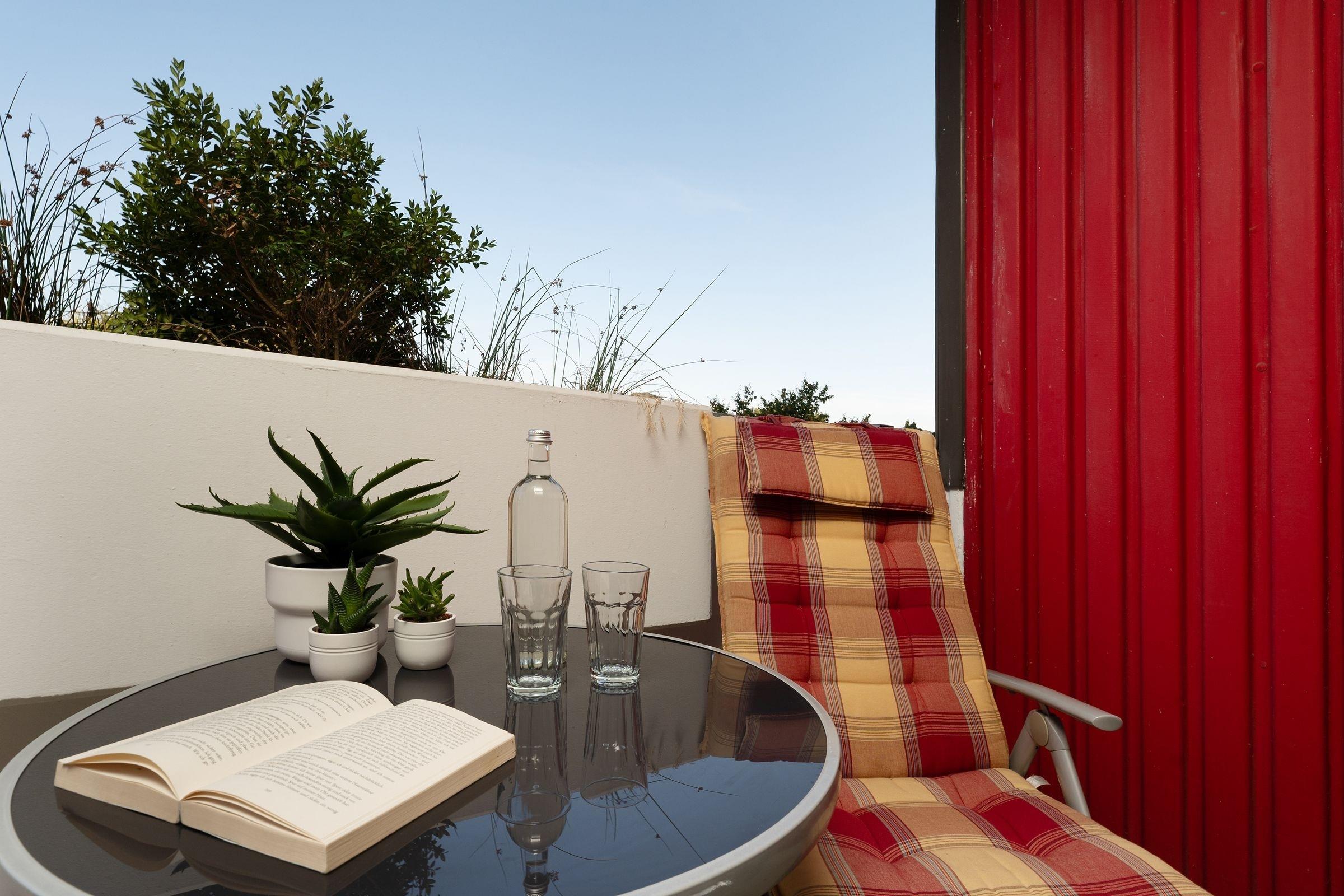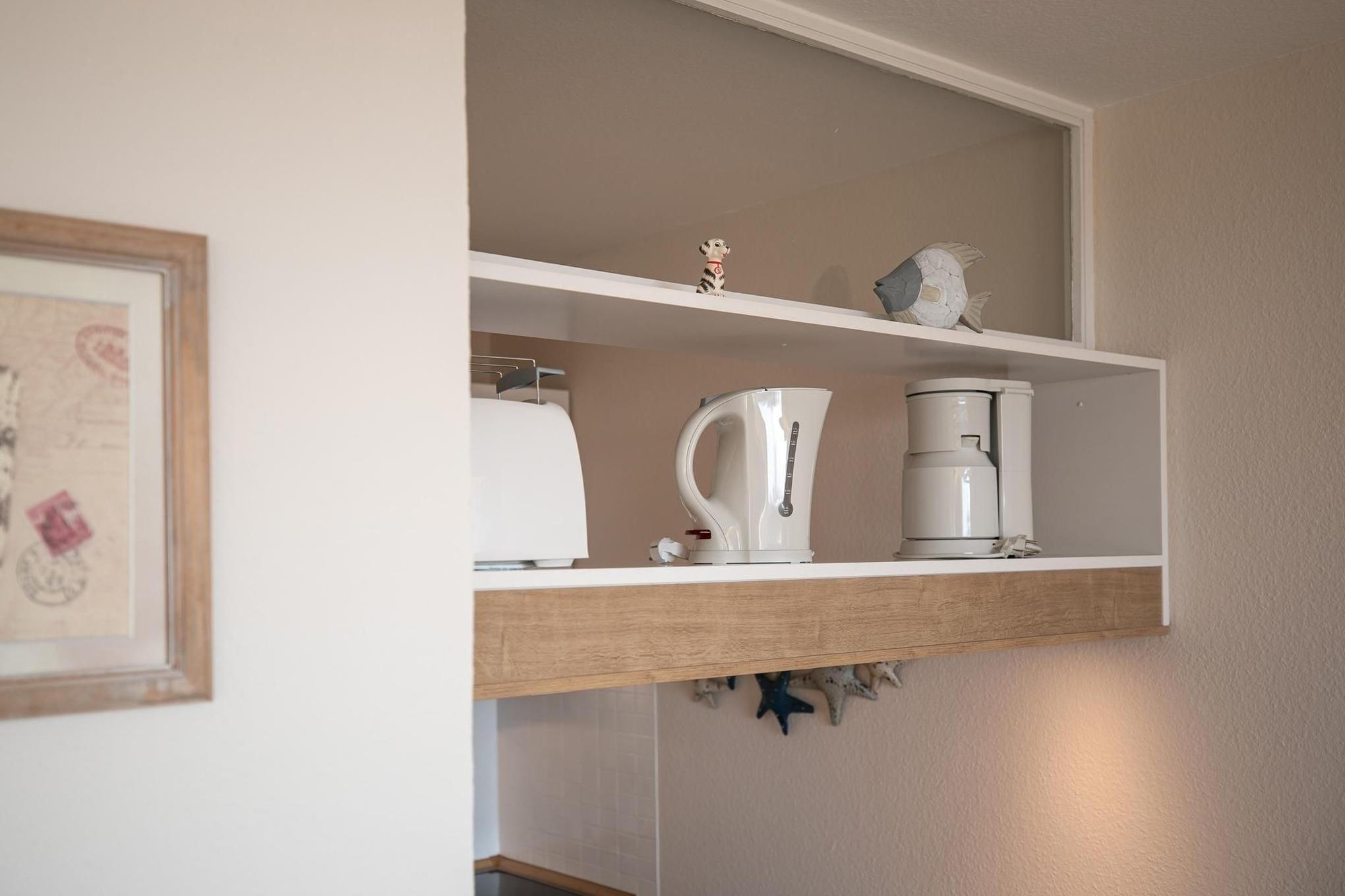 Die Einrichtung des kombinierten Wohn- und Schlafzimmers ist farblich perfekt aufeinander abgestimmt. Dieser Bereich ist mit hochwertigem Doppelbett (2x 90x200 cm) mit ergonomischen 7-Zonen-Latex-Tonnentaschenfederkern-Matratzen und einer Couchecke sowie einem Fernseher ausgestattet. Ein großer Kleiderschrank für Ihre Urlaubsgarderobe ist natürlich vorhanden. Die separate Küche ist hell und modern eingerichtet und gut ausgestattet. Als Essplatz dient die Küchenbar, die den Wohnbereich von der Küche räumlich trennt. Das innenliegende Badezimmer empfängt Sie mit einer Badewanne, die für Erholung nach einem langen Tag am Strand sorgt. Ebenfalls für Entspannung sorgt der möblierte Balkon mit Blick ins Landesinnere. Der WLAN-Anschluss ist selbstverständlich inklusive.