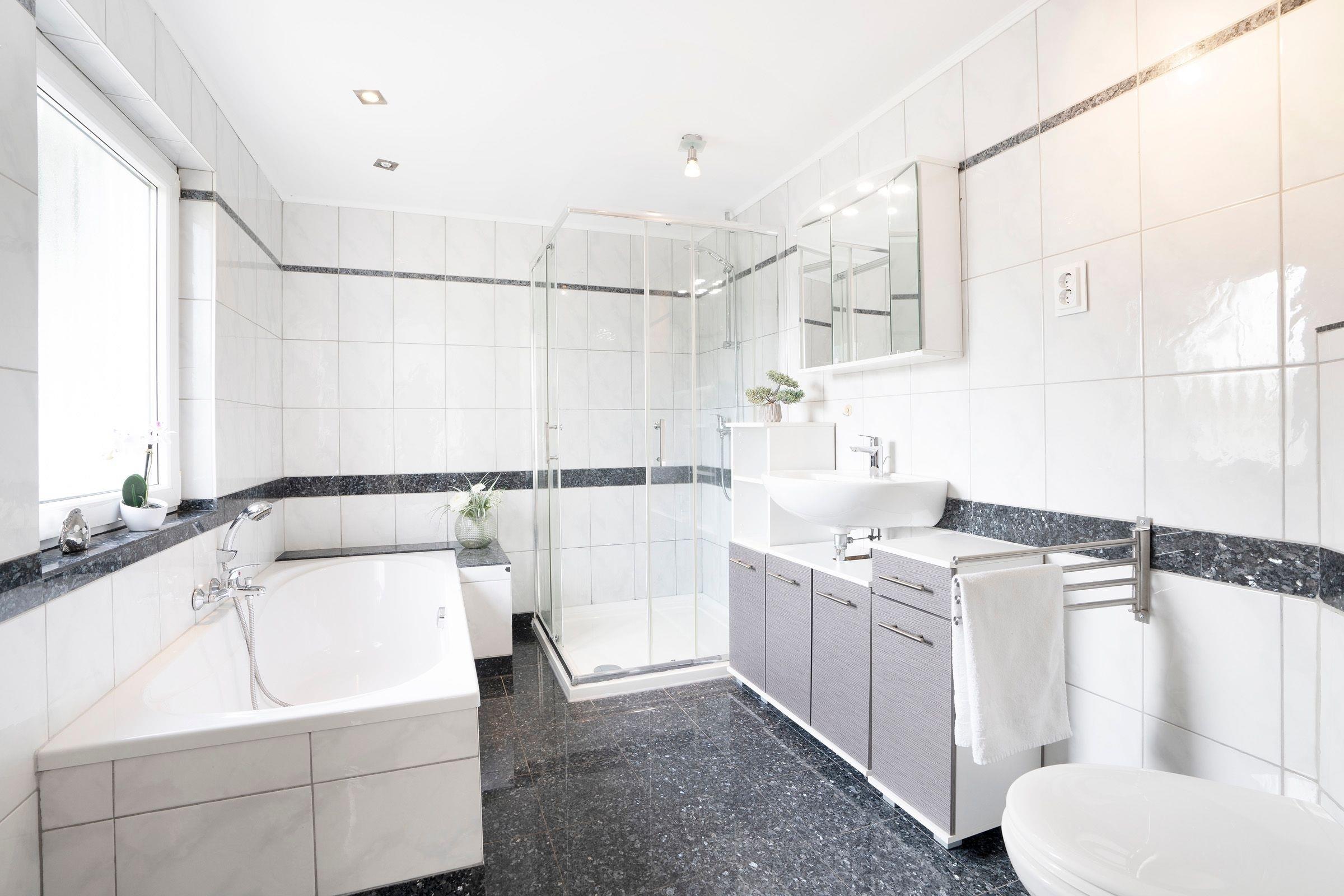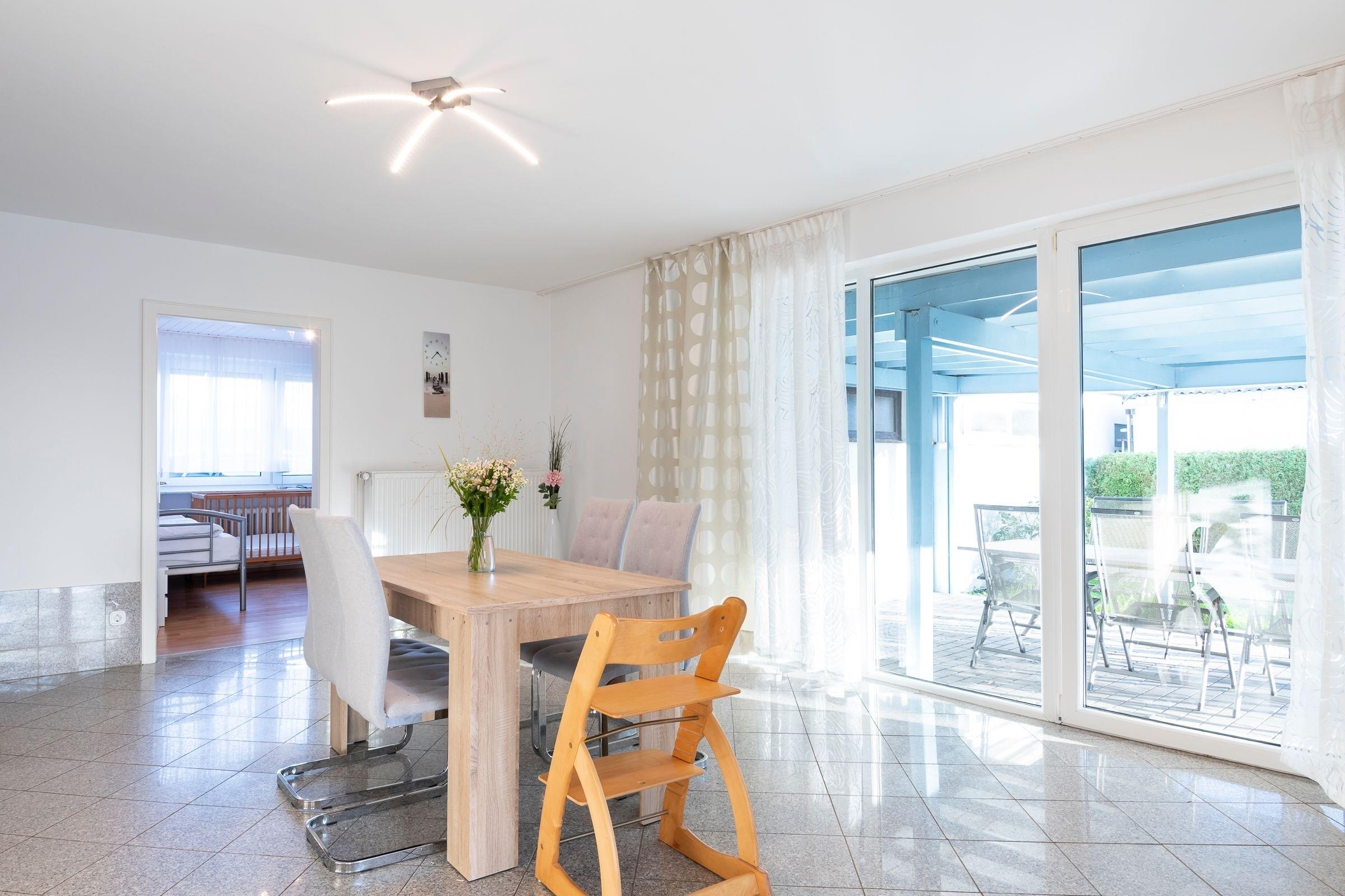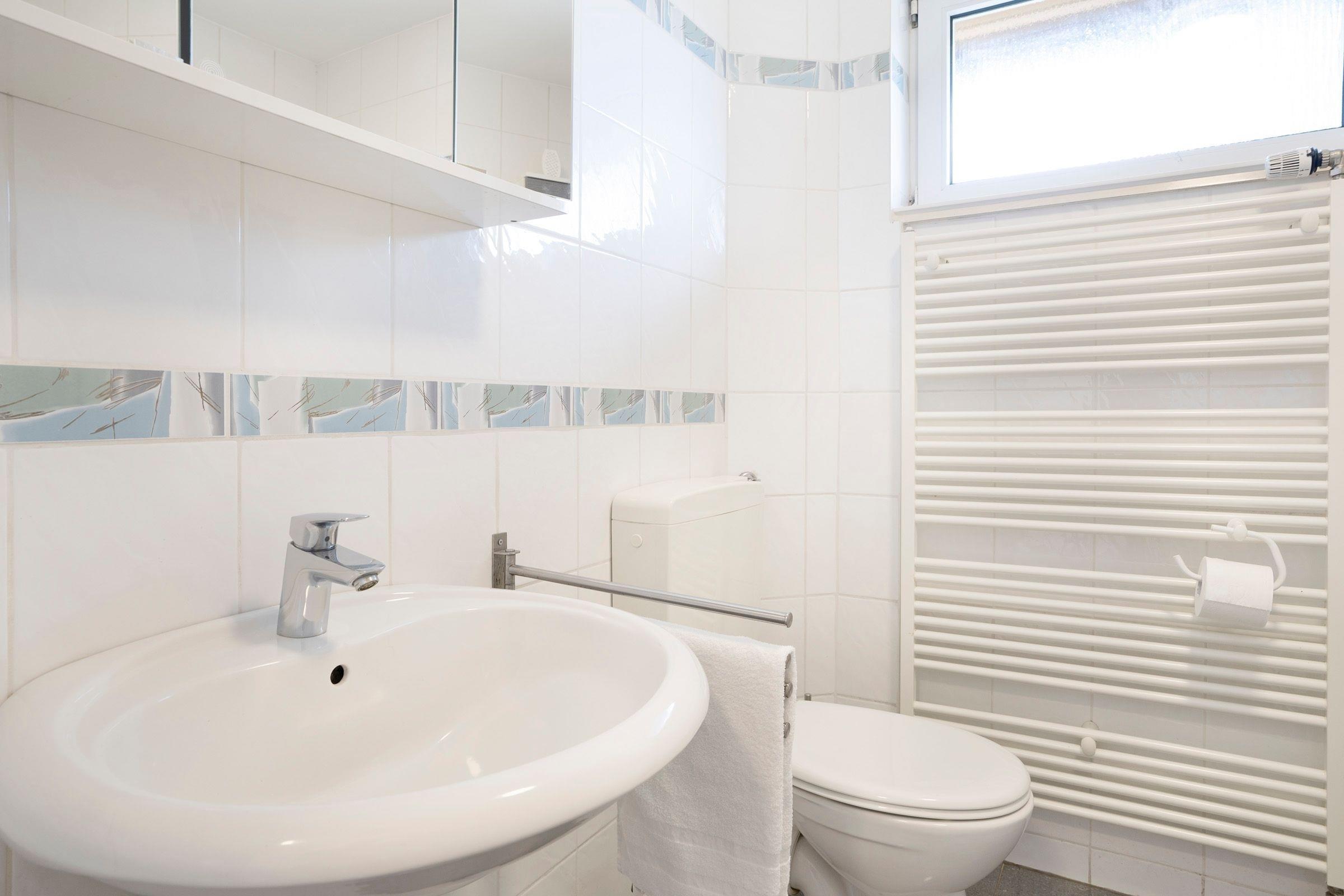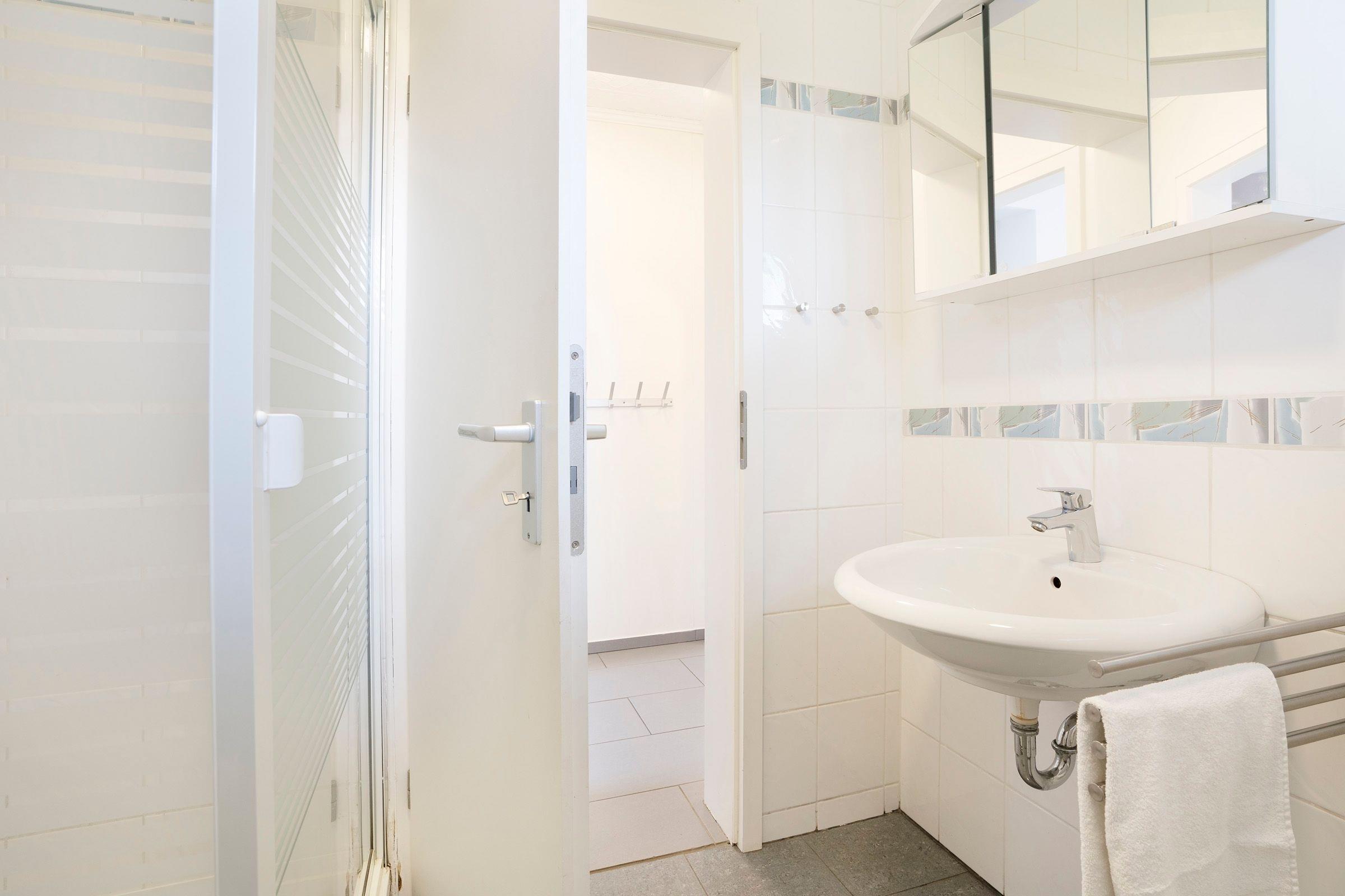 Der lichtdurchflutete Wohnraum ist offen gestaltet - ein Essplatz mit 4 wertigen Stühlen, sowie eine zusätzliche Bank, laden zu geselligen Runden ein und auf der lauschigen Sofalandschaft mit großem Flachbild-TV kann man es sich nach langen Strandtagen gemütlich machen. Von hier aus haben Sie direkten Zugang zum Garten und zwei eigenen Terrassen - eine große überdachte Terrasse und eine weitere mit einem Strandkorb in dem Sie die herrliche Abendsonne genießen können. Das Elternschlafzimmer ist mit komfortablem Doppelbett (2x 80x200 cm), Sideboard und 3-türigem Kleiderschrank ausgestattet, hier gibt es also reichlich Stauraum für Ihre Urlaubskleidung. Das zweite Schlafzimmer ist mit 2 Einzelbetten (je 90x200 cm), Nachttischen und Leseleuchten eingerichtet, zusätzlich hat ein Kinderbett in diesem Zimmer Platz. Von diesem Schlafzimmer aus hat man Zugang zum großen Badezimmer mit Badewanne und Dusche. Beide Schlafzimmer lassen sich durch Außenrollläden abdunkeln. Die Ferienwohnung verfügt zudem über ein weiteres Badezimmer mit Dusche, WC und Wasch-Trockner. Die separate, gut ausgestattete, Küche verfügt über Annehmlichkeiten wie eine Senseo-Kaffeemaschine, eine Kühl-Gefrierkombination und eine Spülmaschine. Von der Küche führt ebenfalls eine Tür direkt in den Garten.