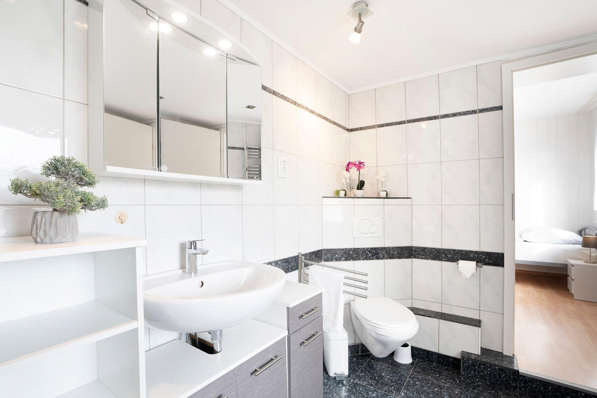 Diese großzügige Ferienwohnung liegt im Erdgeschoss und umfasst eine Wohnfläche von ca. 77m². Mit 2 separaten Schlafzimmern und 2 Bädern bietet sie genügend Platz und Komfort für bis zu 5 Personen.