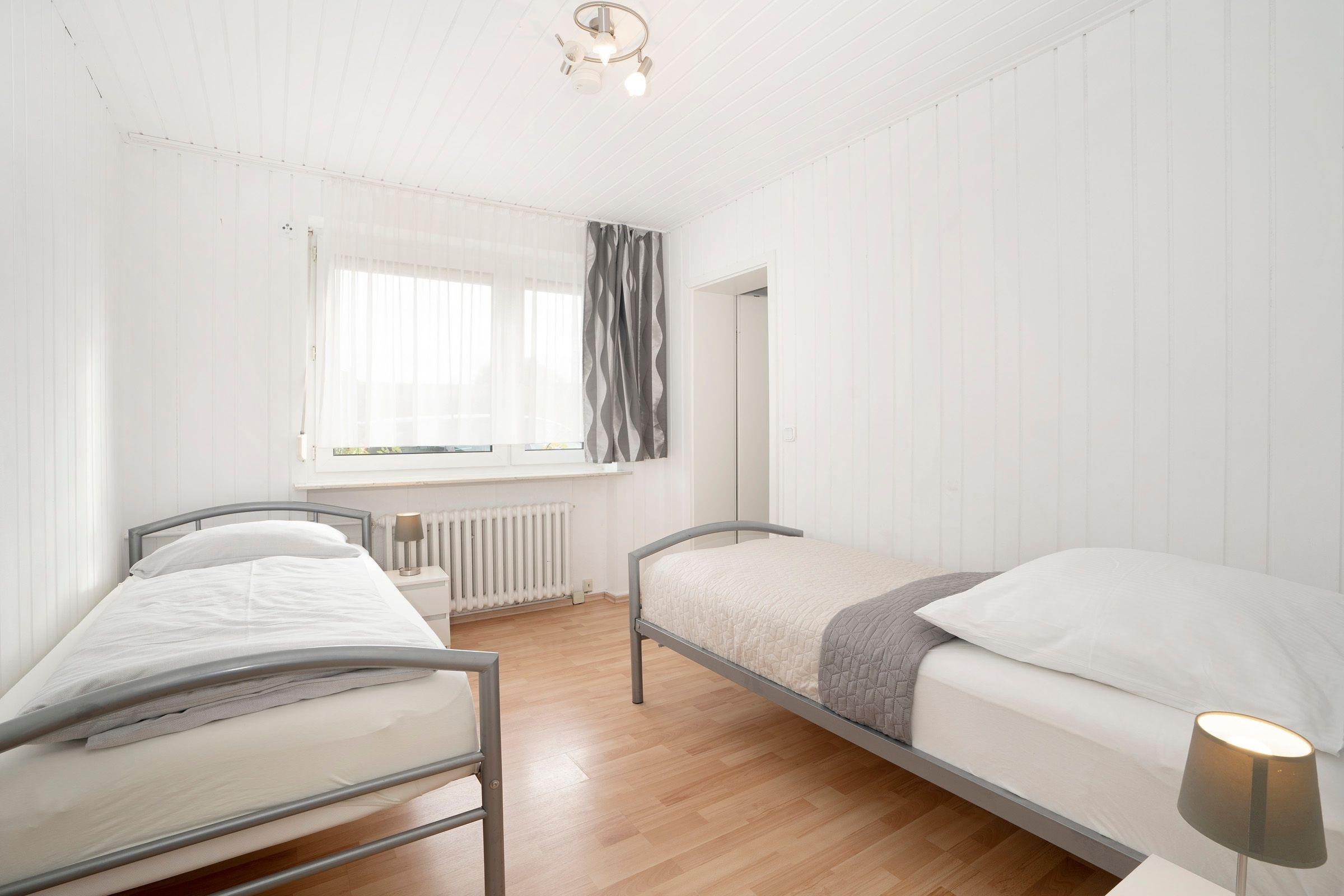 Schlafzimmer 1: 2 Einzelbetten (90x200cm) (Tempur-Matratzen), Verdunkelung (Außenrolladen)