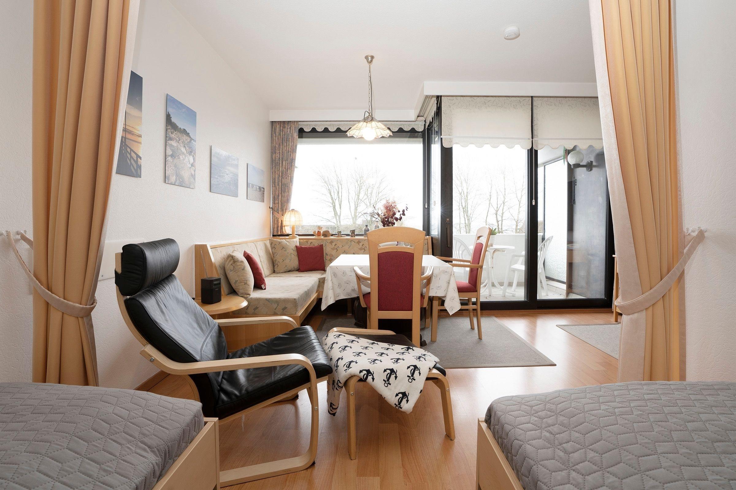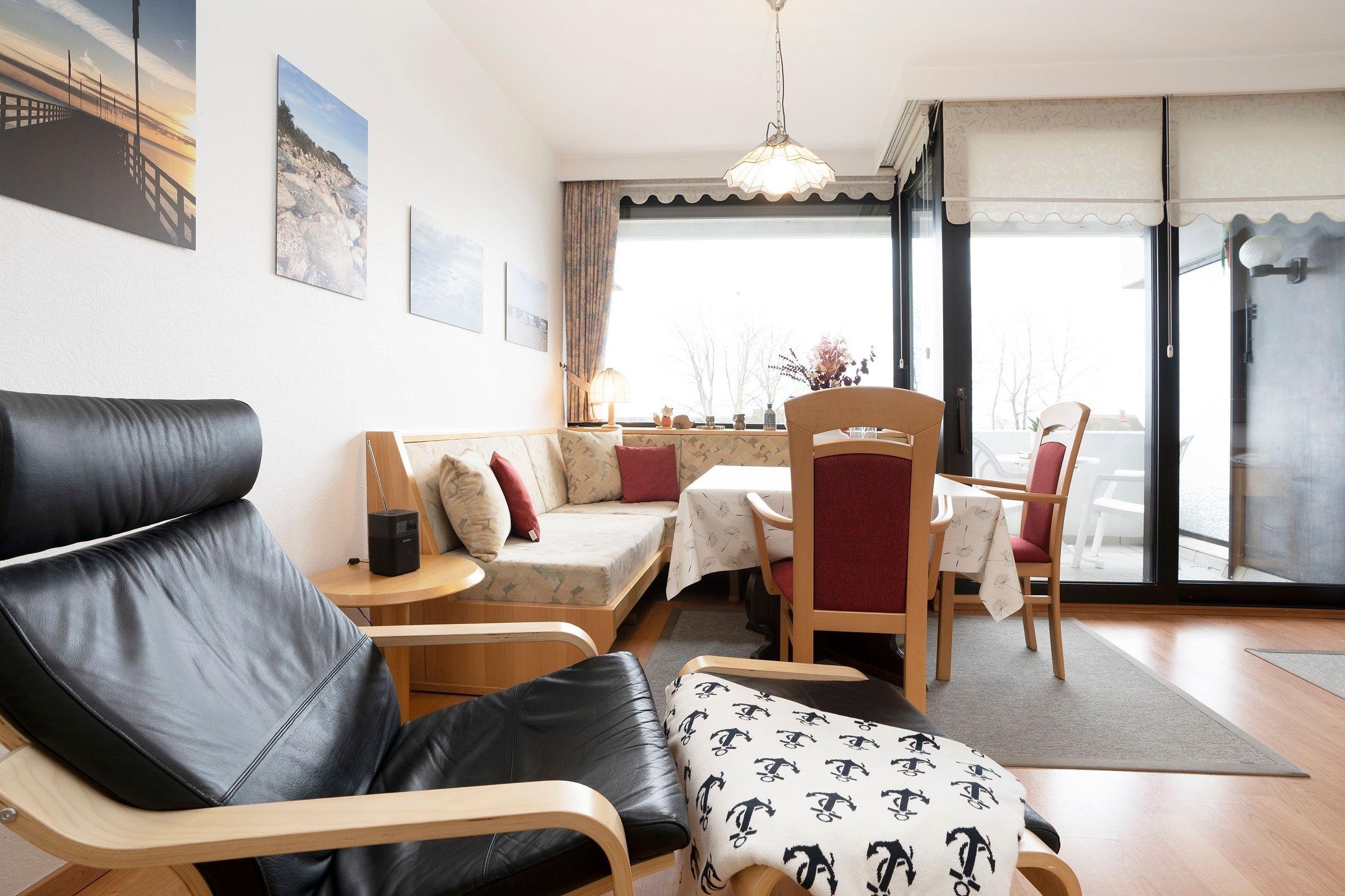 In bester Lage von Dahme: strandnahe 2-Zimmer-Ferienwohnung im 3. Stock mit einer Wohnfläche von ca. 43 m² für bis zu 4 Personen mit Balkon und wunderbarem Meerblick.